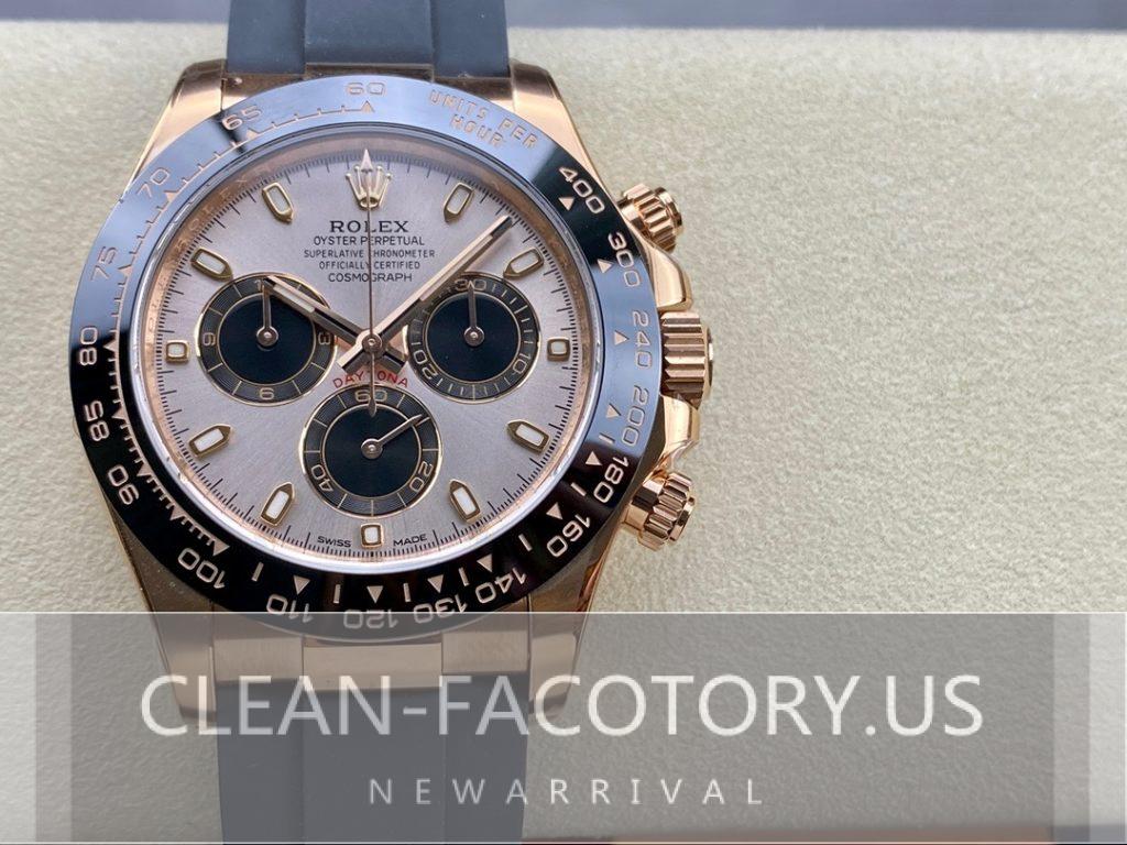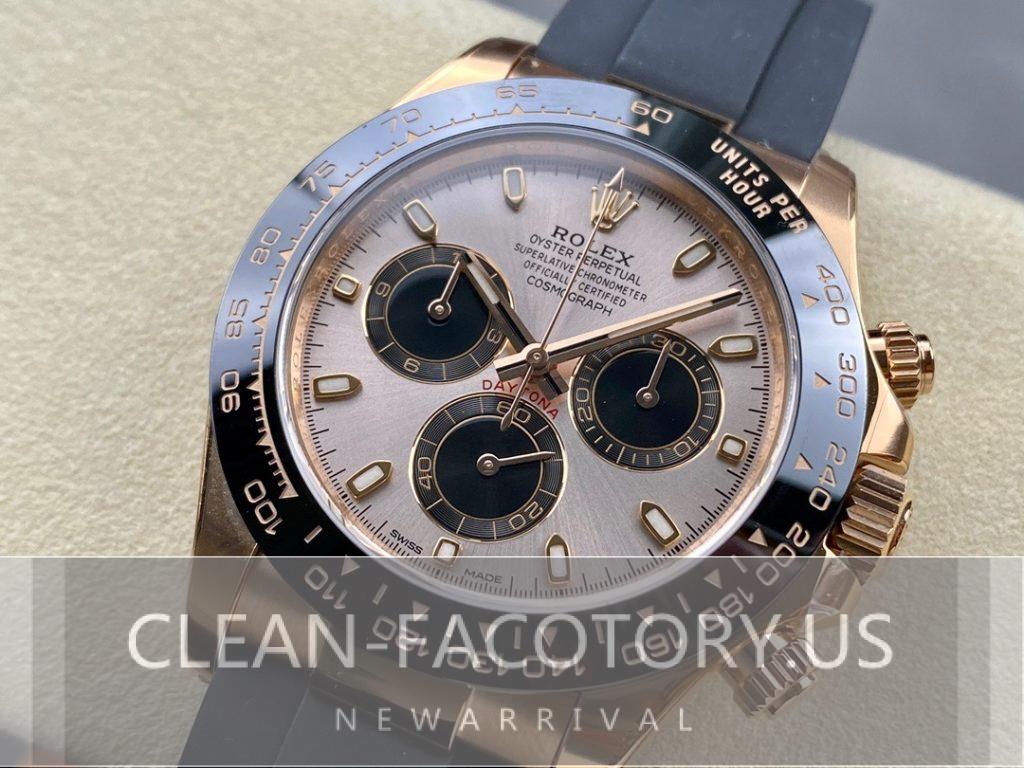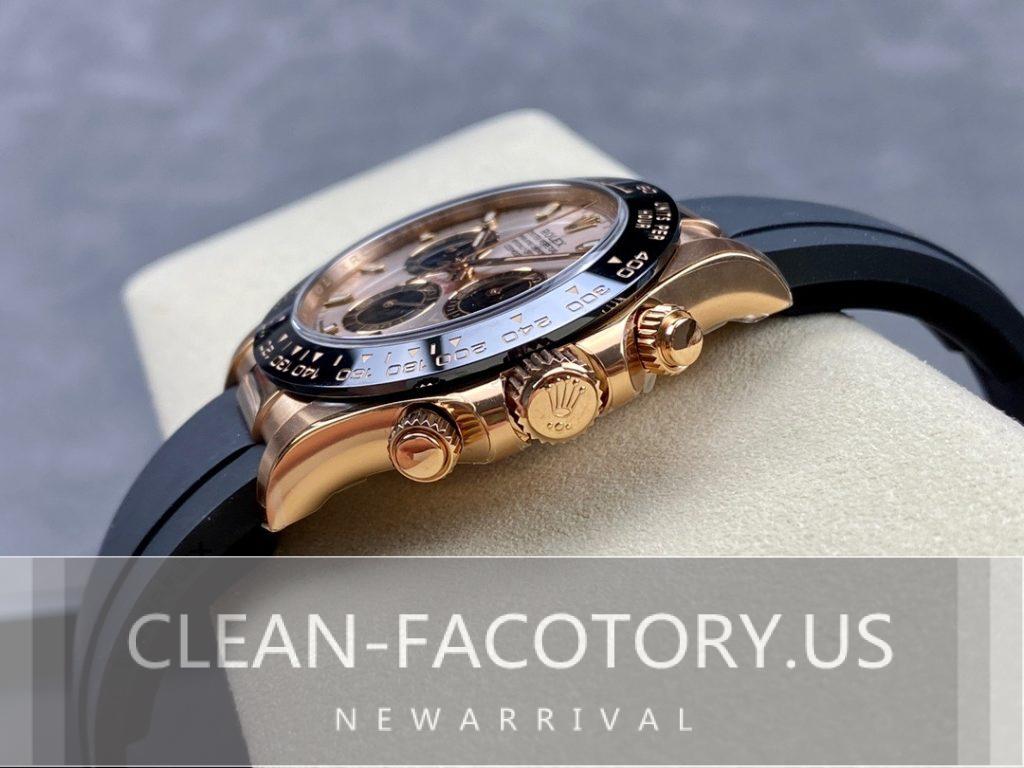 Hello everyone, I’m the web editor for CLean Factory, and today I want to talk about our Rolex Daytona in rose gold with the 4130 movement, a standout in the realm of high-quality replica watches. CLean Factory is renowned for its meticulous craftsmanship and detailed attention, striving to perfectly capture the essence of Rolex in each timepiece. The Daytona rose gold 4130 showcases an extraordinary commitment to quality, from the choice of materials to the finishing of the case. Let’s delve into the specifics of this model and see what makes it the pinnacle of replica watch design.