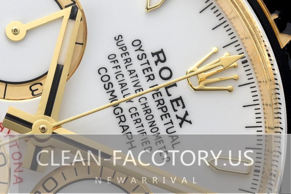 When it comes to replica watches, the Clean Factory Rolex Daytona M126518LN-0002 Gold & White Rubber Dial stands out as one of the best on the market. It combines cutting-edge craftsmanship, precision movement, and stunning design into one unbeatable package. From the immaculate dial to the high-quality materials used, Clean Factory has once again raised the bar in the world of Rolex replicas.