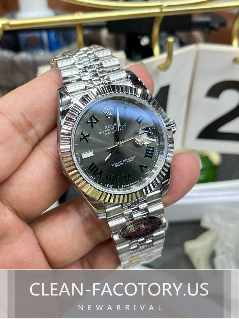 Introduction: Hello everyone! Today, I’m excited to share my thoughts on the Clean Factory Rolex Datejust 41mm Jubilee Slate Grey Wimbledon Dial. This model perfectly combines timeless elegance with modern craftsmanship. Clean Factory has built a strong reputation for creating highly accurate replicas, and this piece continues that tradition. Let’s take a closer look at the details that make this watch stand out.