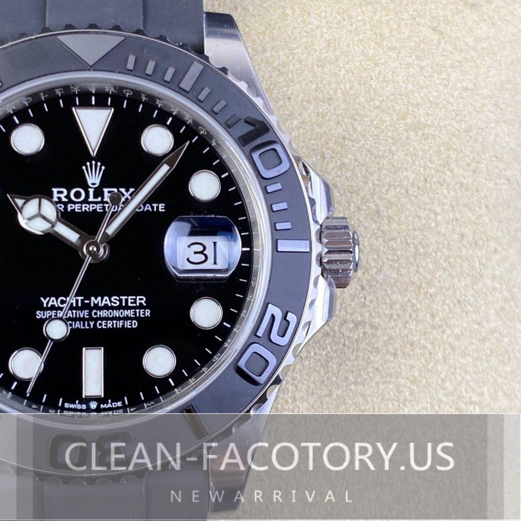 The Clean Factory Rolex Yacht-Master replica also showcases the brand’s dedication to quality with its rubber strap. The strap, designed for comfort and durability, complements the overall aesthetic of the watch. The precise engraving and finishing on the links provide a seamless and comfortable wear. Additionally, the strap’s design is faithful to the original, enhancing the overall appeal and comfort of the watch.