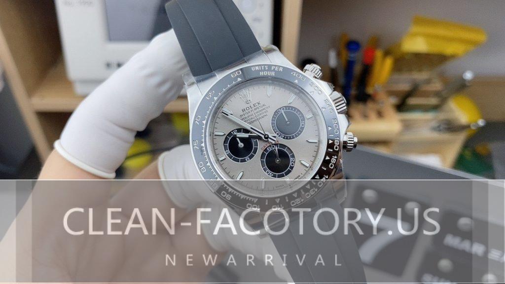 Clean Factory’s Rolex Daytona 126519LN Grey Panda Dial, boasting a Cerachrom Bezel and Rubber Strap, highlights significant advancements in replica craftsmanship this year. As an evolution of its predecessors, this model maintains the classic 40mm diameter but introduces refined enhancements such as the addition of a steel ring at the bezel edge and a transition to the more advanced 4131 movement, while keeping the aesthetic changes minimal.
