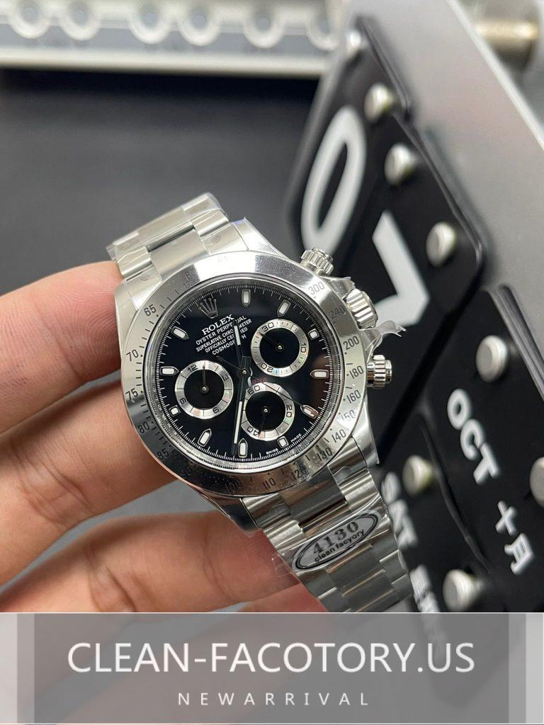 In conclusion, the Clean Factory Rolex Daytona 116520 40mm Black Dial with the 4130 movement excels in design, performance, and wearability. For watch collectors, this model is undeniably a classic worth acquiring. If you are curious about this watch and interested in experiencing it firsthand, it is sure to captivate and satisfy your watch-enthusiast desires.