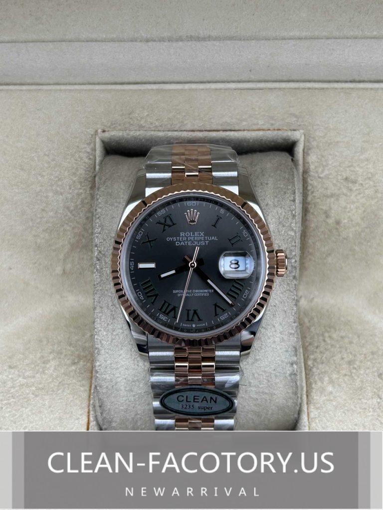 In the replica watch market, the Rolex Datejust has always held a place of prestige, with CLean Factory at the forefront in replicating its luxurious essence. The CLean Factory Rolex Datejust 36mm 126231Jubilee in two-tone rose gold with a slate grey Wimbledon dial is a testament to this craftsmanship. This review will delve into the details and quality of this specific model to understand why it stands out as one of the best editions featuring the 3235 movement.