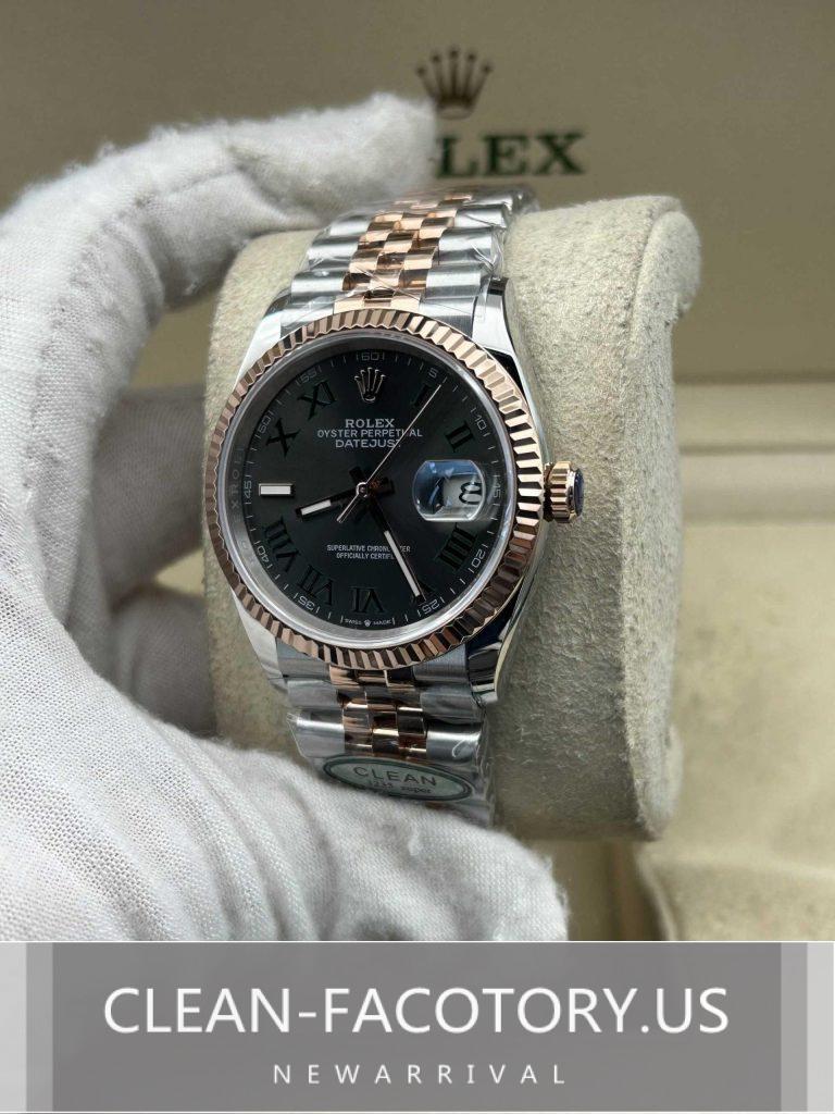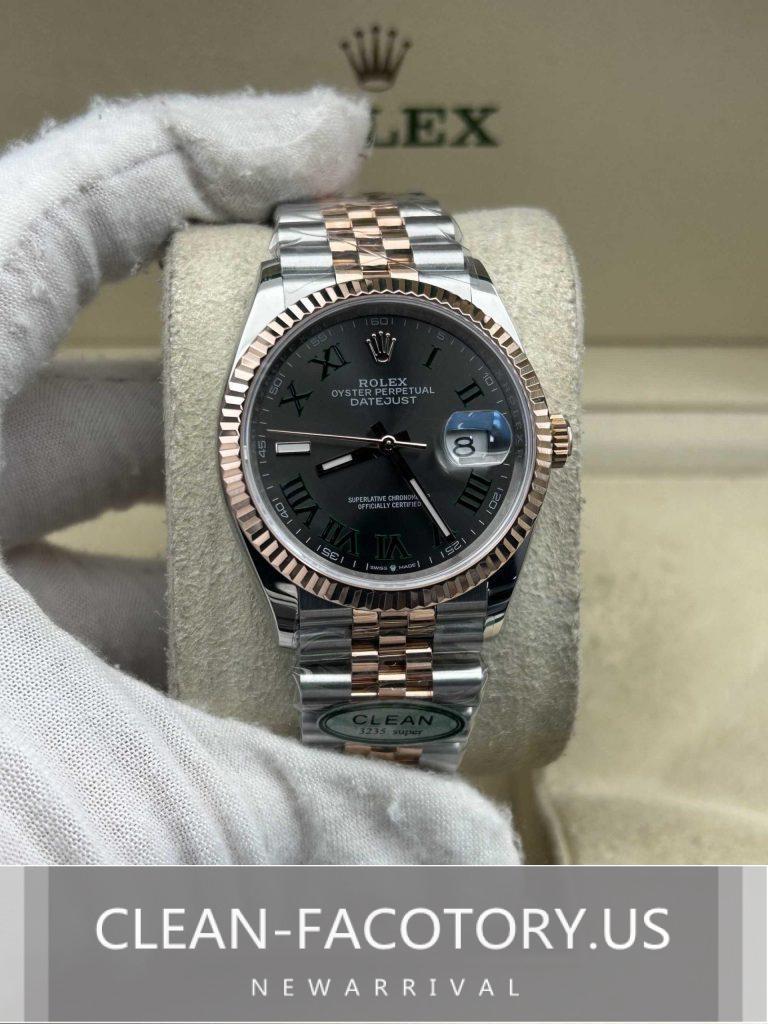 Conclusion: The CLean Factory Rolex Datejust 36mm 126231Jubilee in two-tone rose gold with a slate grey Wimbledon dial is an excellent choice for those seeking the luxury of a Rolex with the affordability of a replica. It embodies the elegance and sophistication synonymous with the brand, making it a perfect accessory for both formal and casual occasions. This model not only mirrors the aesthetic appeal of the original but also ensures reliability and durability, making it a worthy investment for any watch enthusiast.