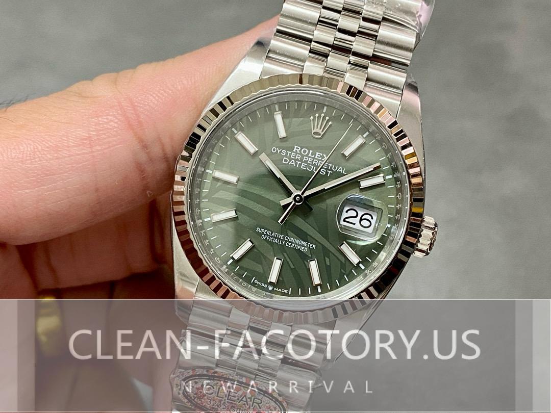 Excitingly, Clean Factory will soon release a variant of the Datejust featuring a stunning Palm Leaf dial with a diamond green face. This new design is one of the most eagerly awaited releases in the replica market. The intricate Palm Leaf design, combined with diamond accents, adds elegance and sophistication. Additionally, the green color adds a bold twist, making it an excellent choice for collectors looking for something unique. Therefore, this release promises to be an exceptional addition to Clean Factory’s collection.