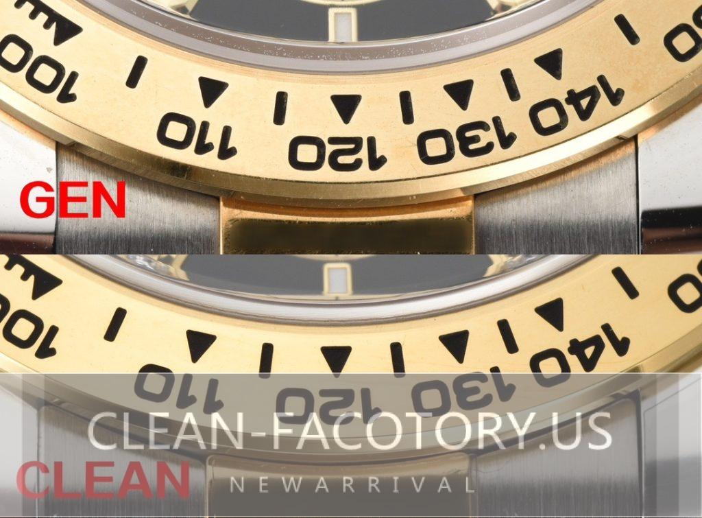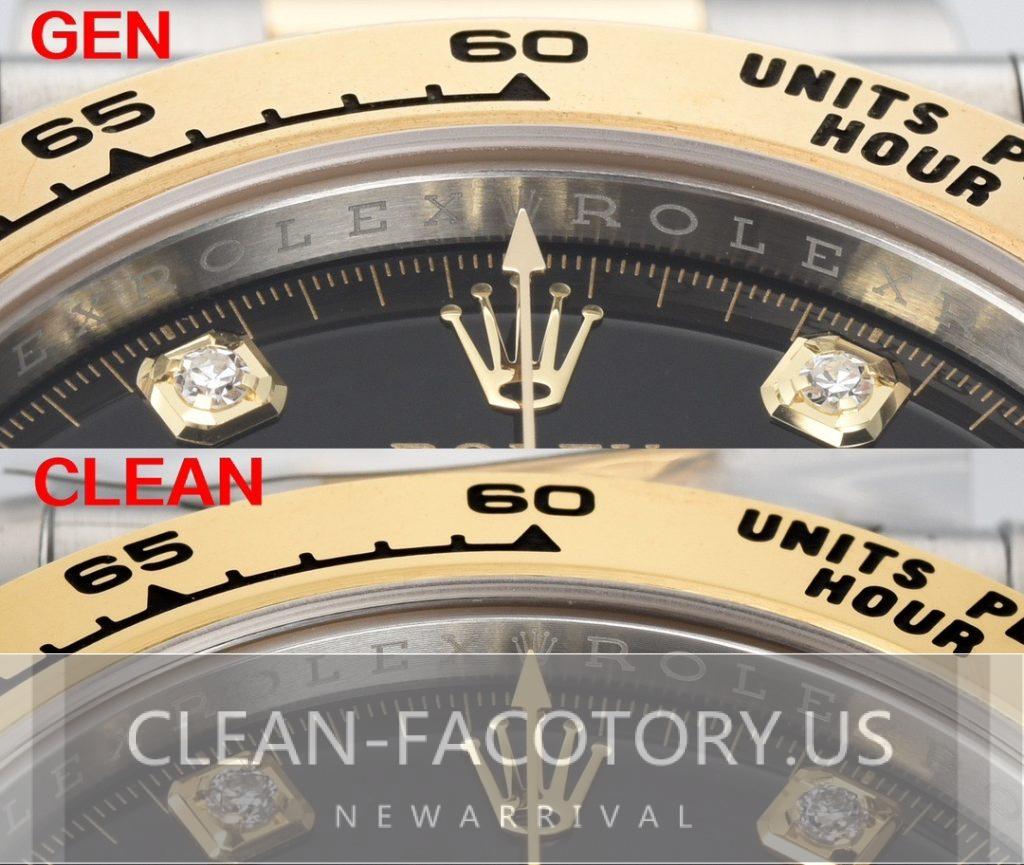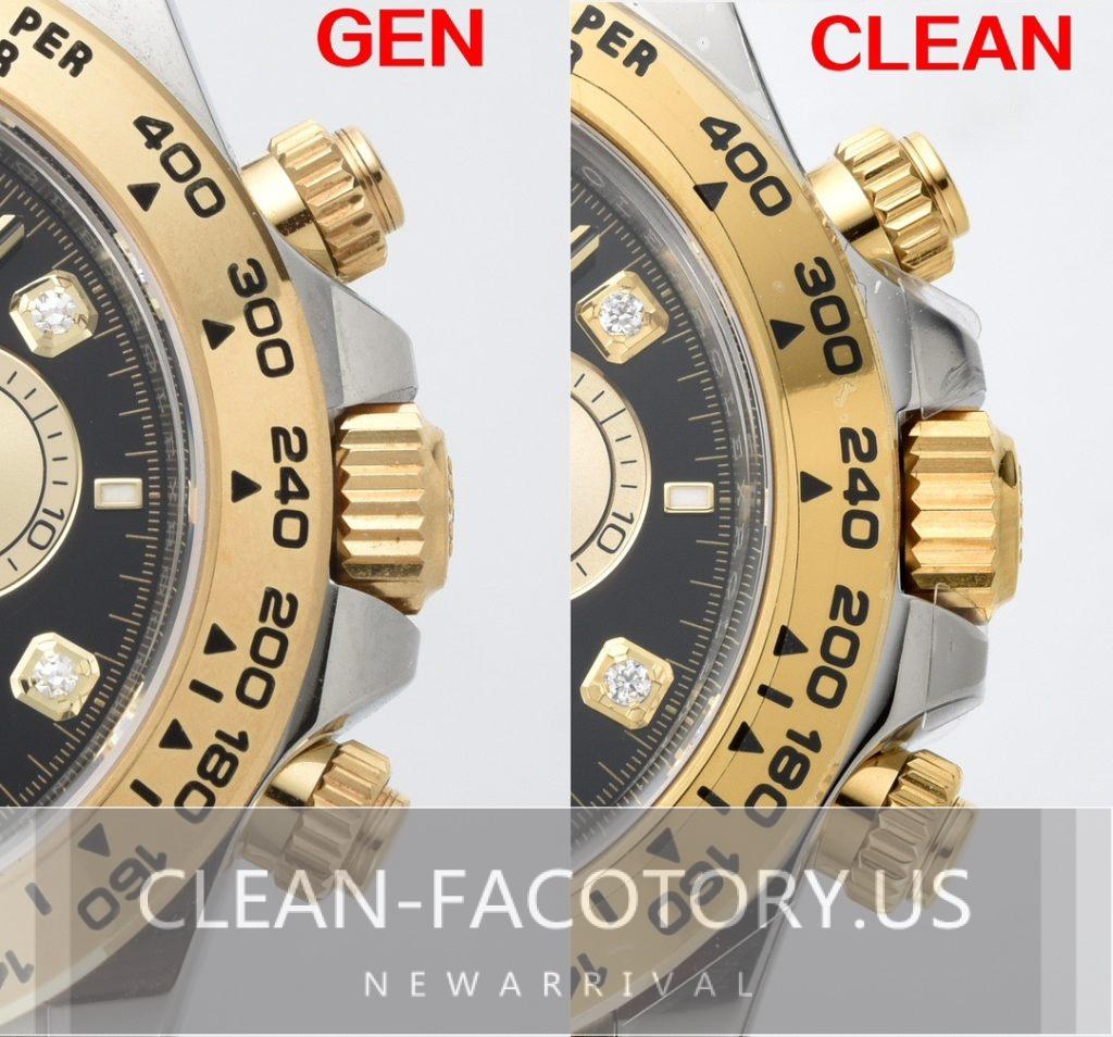 • Bezel Engravings: The font depth and alignment on the Clean Factory bezel are precise, with no notable discrepancies compared to the original.