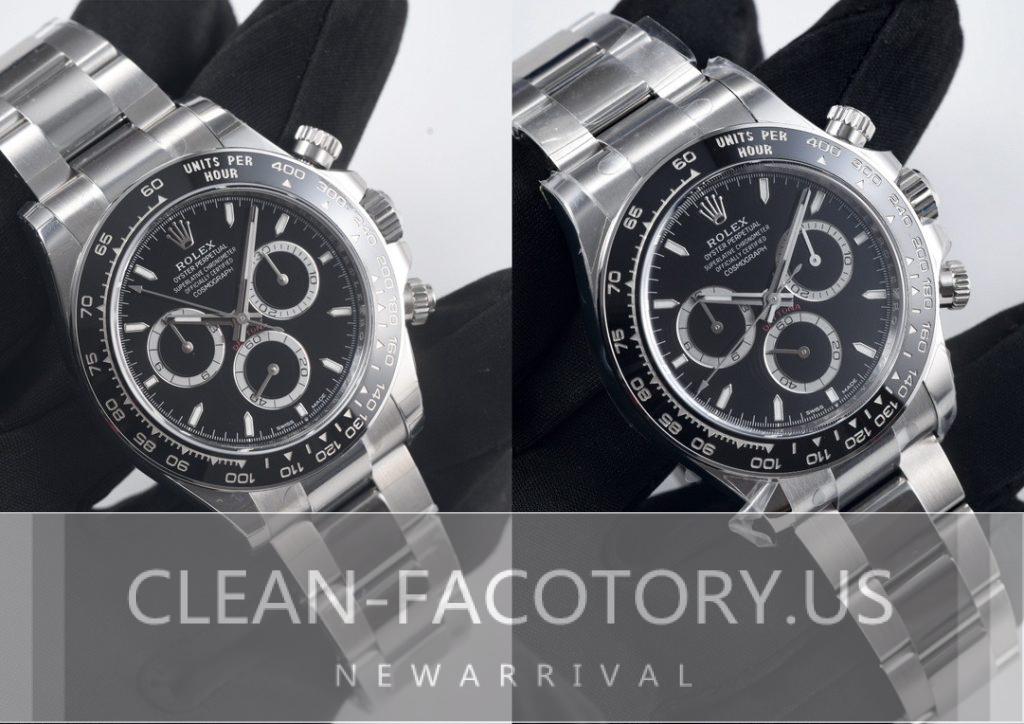The focal point of interest in our comparison photos is the dial’s three silver sub-dials. The most significant update in the 4131 model includes an added bright ring on the edge of these sub-dials, a detail Clean Factory executed with excellent precision in angle and brightness. However, the texture of the silver-gray sub-dials, in my opinion, is not as refined as the genuine product, though this difference is invisible to the naked eye and can be better understood through a comparison under natural light.