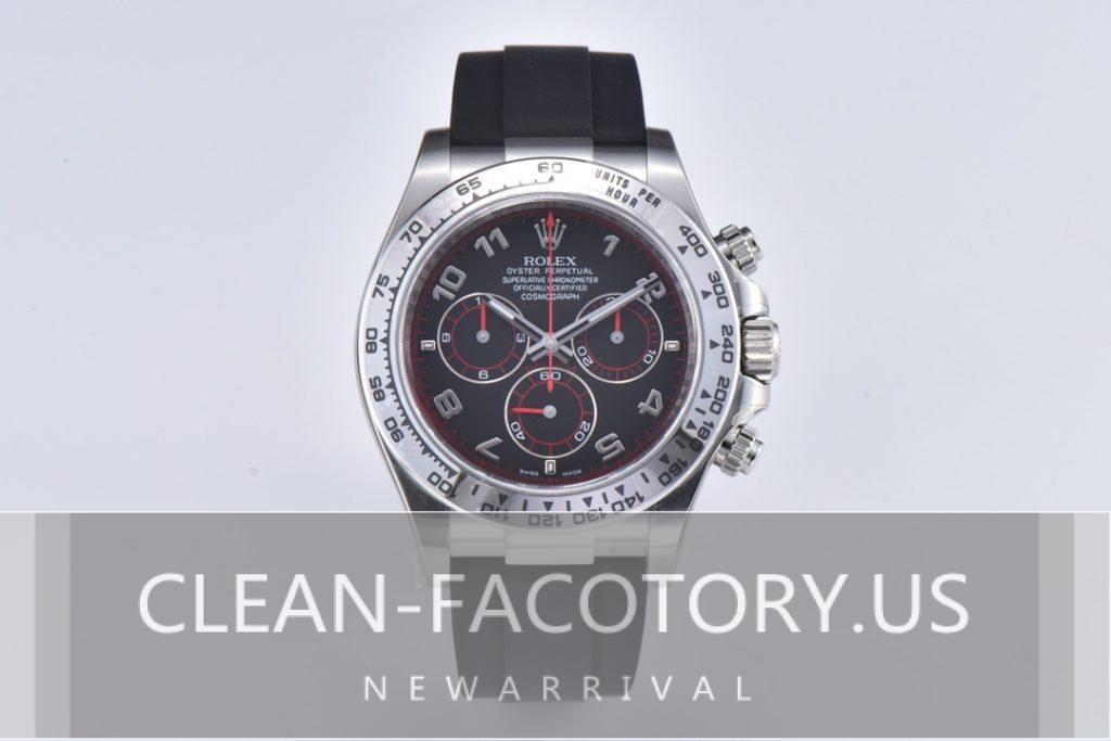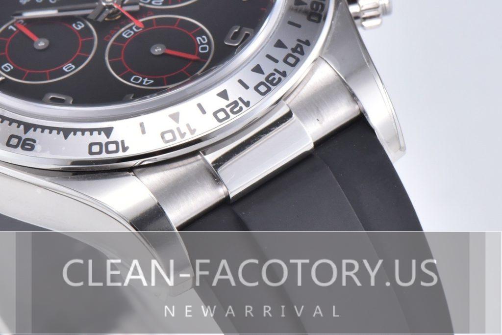 Many watch enthusiasts inquire if the Clean Factory Rolex Daytona ‘White Gold Red Devil’ replica is easily distinguishable from the original. The clear answer is no. The Rolex Daytona series remains a sought-after model in the market, with numerous manufacturers striving for accurate replication. Prior to Clean Factory’s emergence, N factory’s replicas of the Rolex Daytona series were hardly distinguishable to the untrained eye. Following N factory’s demise, both BT factory and Clean Factory obtained the N factory’s 4130 movement. Clean Factory, notably, acquired most of N factory’s advantages directly from its boss. Facing competition from BT factory, they combined N factory’s techniques with their own, remastering molds for an even more precise detail replication.