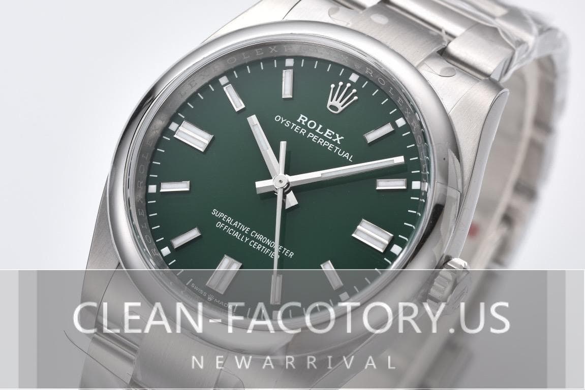 Conclusion: The Clean Factory Rolex Oyster Perpetual 36mm with a green dial is a perfect blend of traditional Rolex aesthetics and modern replication technology. It represents the pinnacle of replica craftsmanship, making it a desirable piece for both new enthusiasts and seasoned collectors. Whether you’re attending a formal event or going about your daily business, this watch promises to deliver both style and functionality, making it a worthwhile addition to any collection.