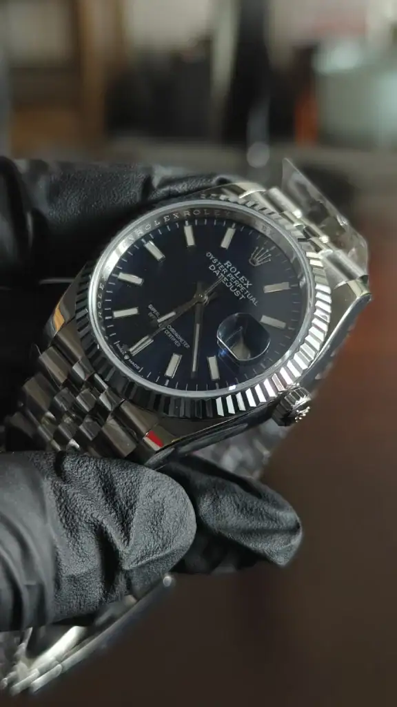 The “Bright Blue” dial of the Datejust 41 is arguably the most difficult color to replicate in horology, requiring a perfect balance of radial brushing and lacquer application.