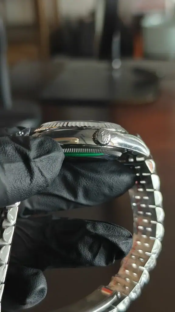 The Jubilee bracelet is a complex piece of engineering. The CF version provides a “liquid” drape; the links articulate without friction or the “gritty” feeling associated with lower-tier bracelets. The folding Oysterclasp on the Clean model snaps shut with a reassuring mechanical “thud,” and the 5mm Easylink comfort extension operates smoothly, providing essential micro-adjustments for temperature-induced wrist swelling.