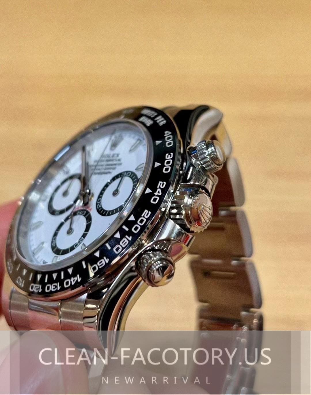 The Clean Factory’s White Panda Daytona 4131 movement represents a fusion of precise craftsmanship and exceptional design. In the latest 126500 white model, Clean Factory has successfully replicated Rolex’s iconic design, while introducing subtle improvements, making this watch not just a replica, but a piece of art. Behind the white dial, the delicately silvered sub-dial edges with added bright rings significantly enhance the overall visual appeal. Clean Factory‘s relentless pursuit of detail ensures that each White Panda Daytona showcases unparalleled quality.
