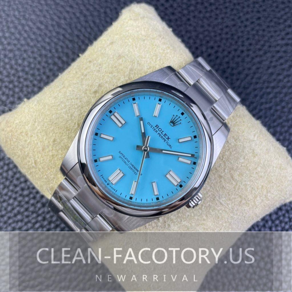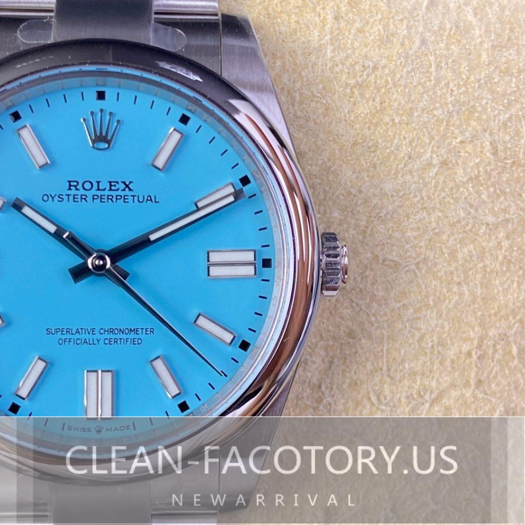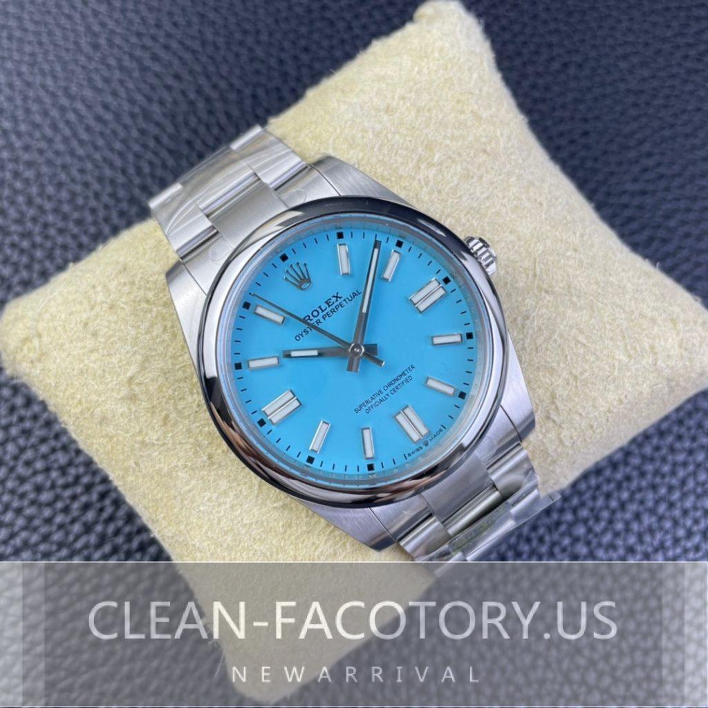 Bracelet: Durable Comfort The Rolex Oyster Perpetual 41mm 124300 Tiffany Dial by Clean Factory is equipped with a high-quality bracelet made from durable 904L stainless steel, which is both comfortable and wear-resistant. The meticulous design of the bracelet includes waterproof and sweatproof features, extending its lifespan. The bracelet’s clasp is exquisitely designed for easy adjustment and convenience during wear, enhancing the overall comfort of the user.