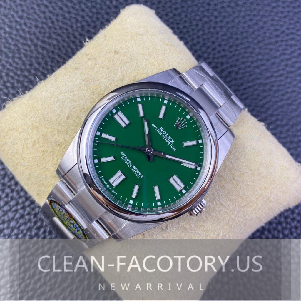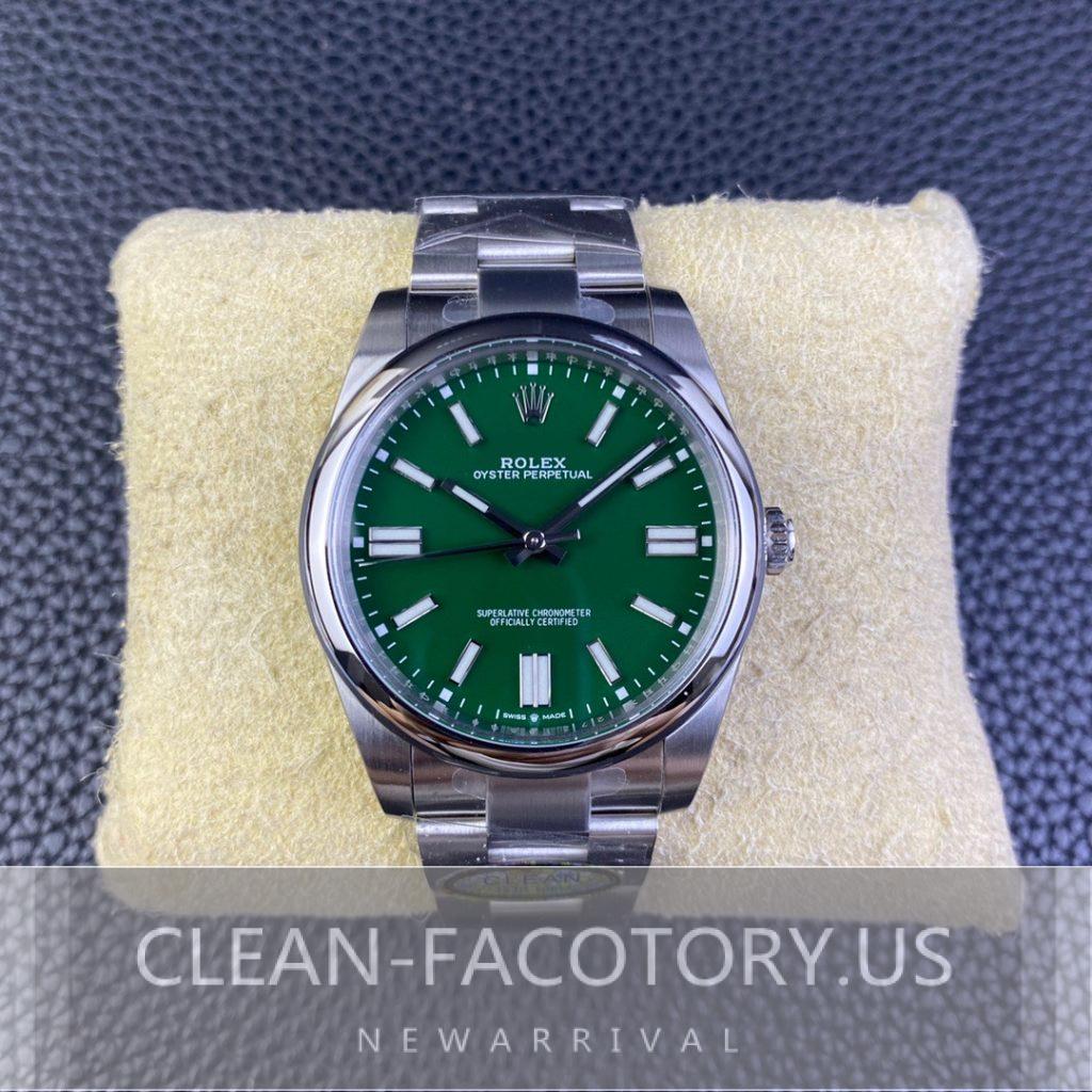Conclusion CLean Factory’s Rolex Oyster Perpetual Green Dial 3230 replica, while not reaching the exact standards of genuine models in certain technical and material aspects, closely matches the original in quality, craftsmanship, and appearance, offering great value for money. For consumers with limited budgets who still desire the look and function of a Rolex, this replica is an ideal choice. If you are a fan of Rolex’s design or a connoisseur of watchmaking craftsmanship, this replica from CLean Factory is definitely worth your attention and consideration.