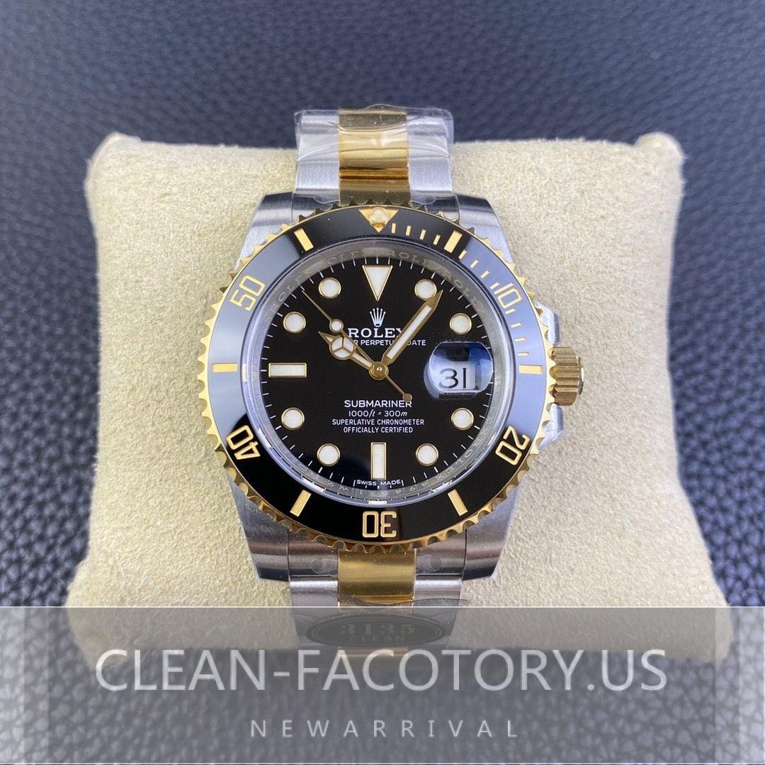 In the realm of replica watchmaking, Clean Factory has established itself as a premier manufacturer, particularly renowned for its Rolex replicas. Among its crowning achievements is the Two-Tone Black Submariner, a model that not only captures the essence of Rolex’s legendary design but also incorporates Clean Factory’s signature attention to detail and craftsmanship. This review delves into the features that set this replica apart from its counterparts and examines how it measures up to the genuine Rolex Two-Tone Black Submariner.