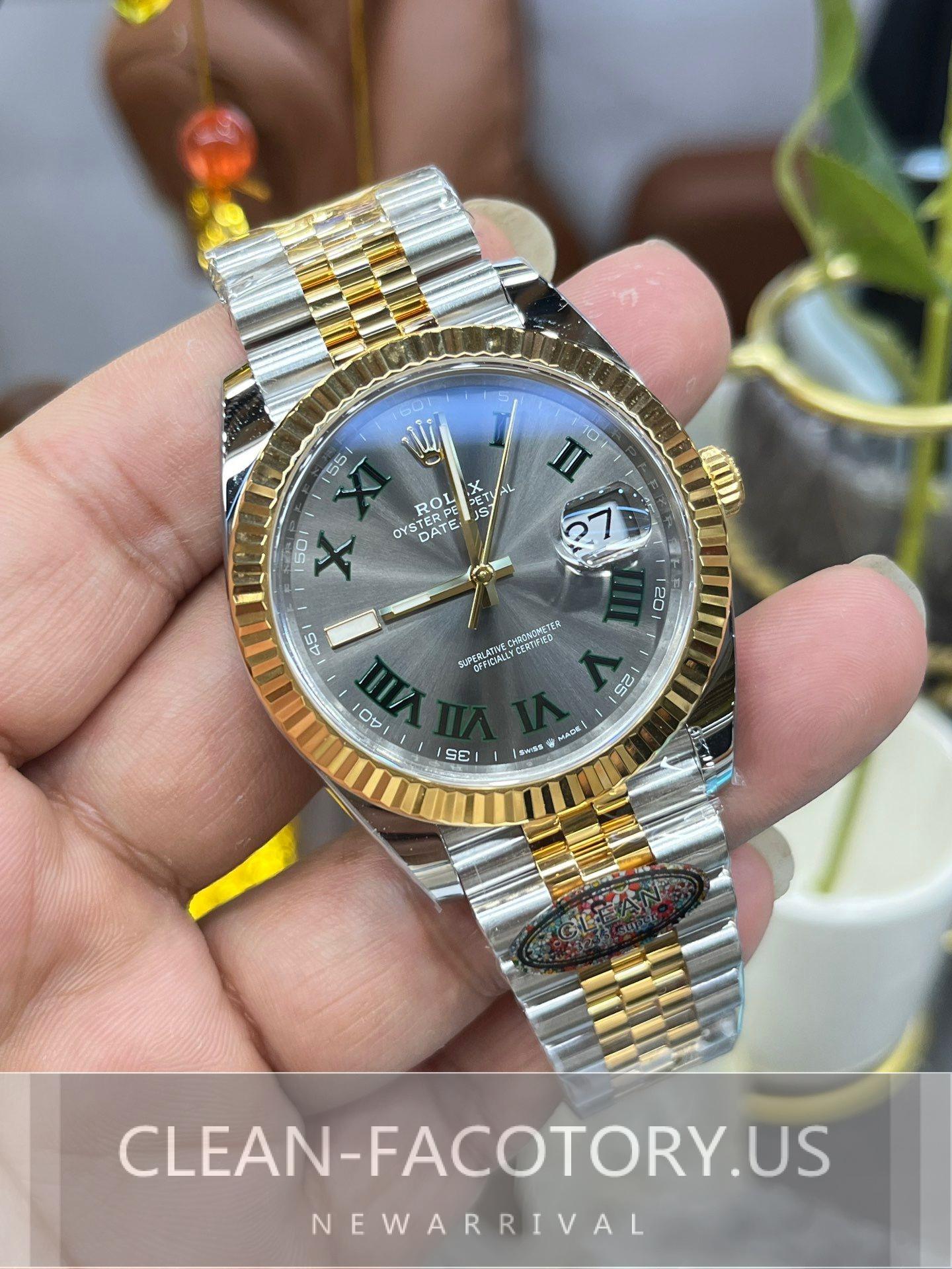 Clean Factory has solidified its reputation in the replica watch market by continuously delivering products that rival genuine watches in quality and aesthetic. Among their offerings, the Rolex Datejust 41mm in two-tone yellow gold with a slate grey Wimbledon dial is a standout piece, epitomizing luxury and precision craftsmanship.