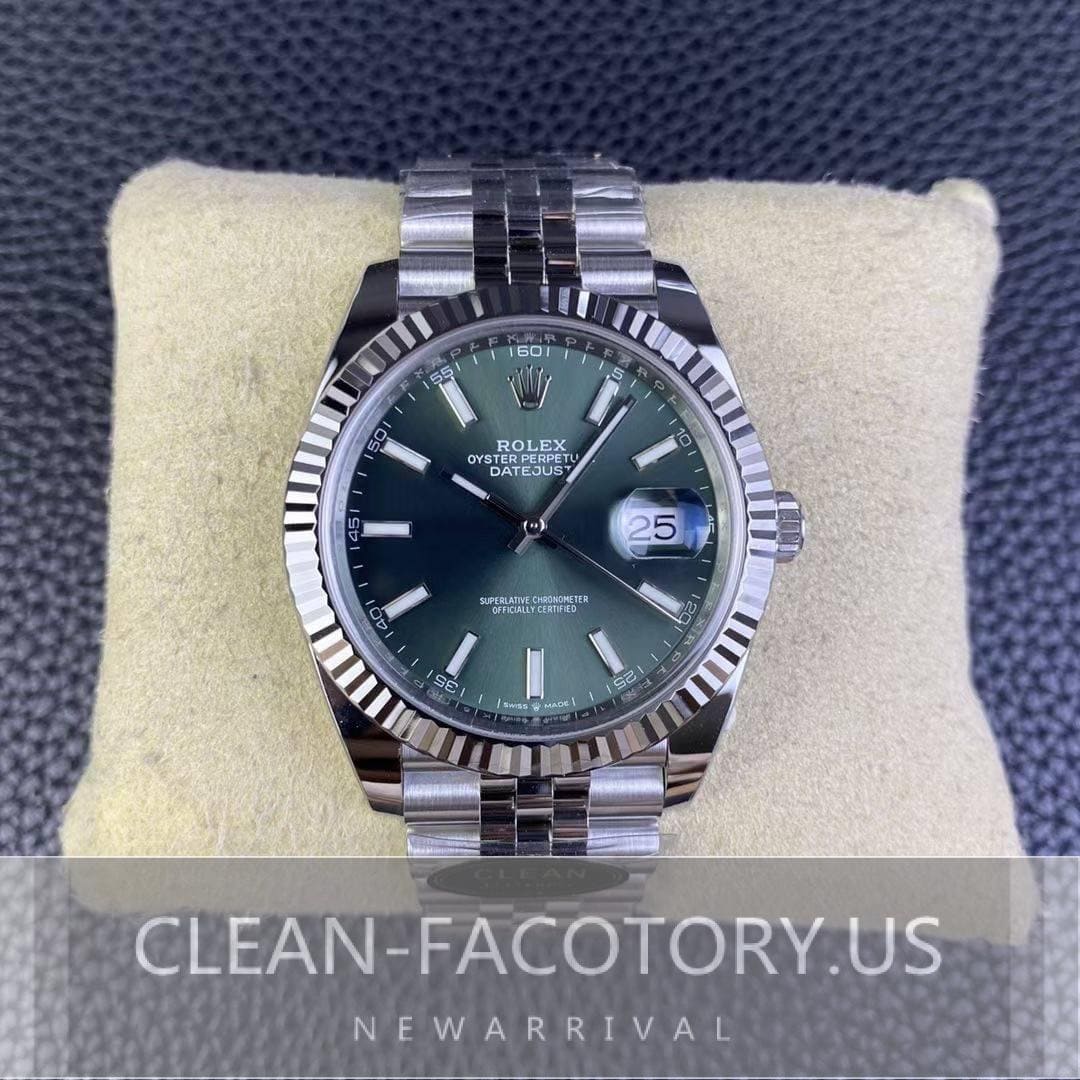 How does the Clean Factory Rolex Datejust 41mm 126334 Jubilee Green Dial, White Gold Fluted Bezel, 904L Steel, Best Edition 3235 Movement replica watch stand? The Clean Factory has been a significant presence in the market for a long time, known for their specialization in Rolex replicas, including the GMT-Master, Daytona, Datejust, and Submariner series. They focus on a single product line, enhancing the craftsmanship quality, unlike factories like ZF, which produce a variety of brands and models.