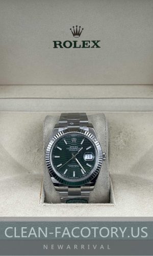 Clean Factory Rolex Datejust 41mm Oyster Green Dial, White Gold Fluted Bezel, 904L Steel, Best Edition 3235 Movement