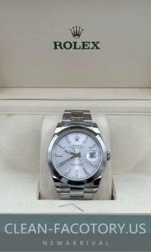 Clean Factory Rolex Datejust 41mm Oyster 126300 Silver Dial, Smooth Bezel, 904L Steel, Best Edition 3235 Movement