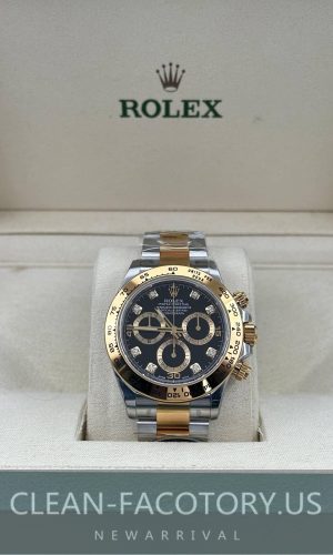 Clean Factory Rolex Daytona 116503 Black Diamond Dial, 2tone 18k Gold wrapped 904L Steel, Best Edition 4130Movement