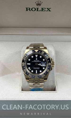 Clean Factory Rolex GMT Master II 126718GRNR Jubilee, Black/Grey Ceramic Bezel, 18K Gold Wrapped 904L Steel, Best Edition 3285 Movement
