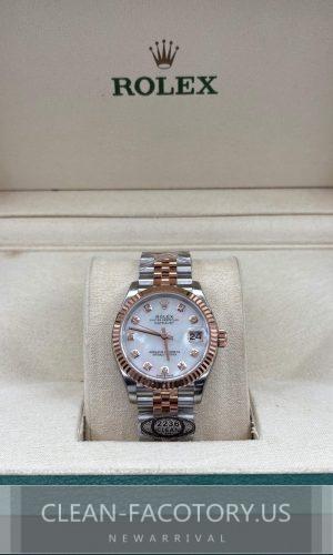 Clean Factory Rolex Lady Datejust 31mm 278271Jubilee Two-Tone, Mother-of-Pearl Diamond Dial, RoseGold Fluted Bezel, RoseGold wrapped 904L Steel, Best Edition 2236 Movement