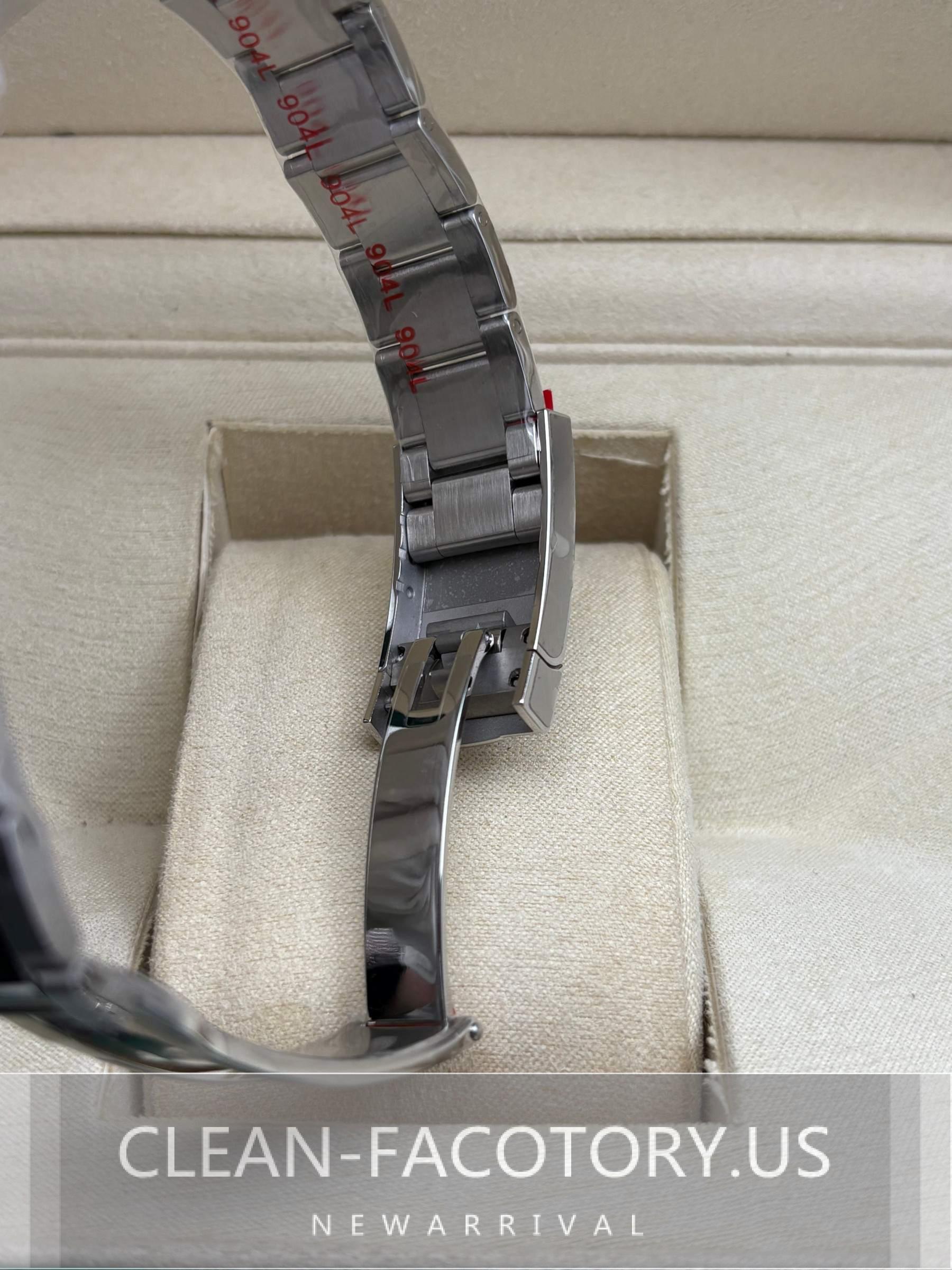 – **Bracelet**: Experience Elevated Comfort and Style with the Clean Factory Oyster Bracelet – Crafted with Solid 904L Stainless Steel, DLC Scratch-Protection, and Easylink 5 mm Extension for a Perfect Fit.