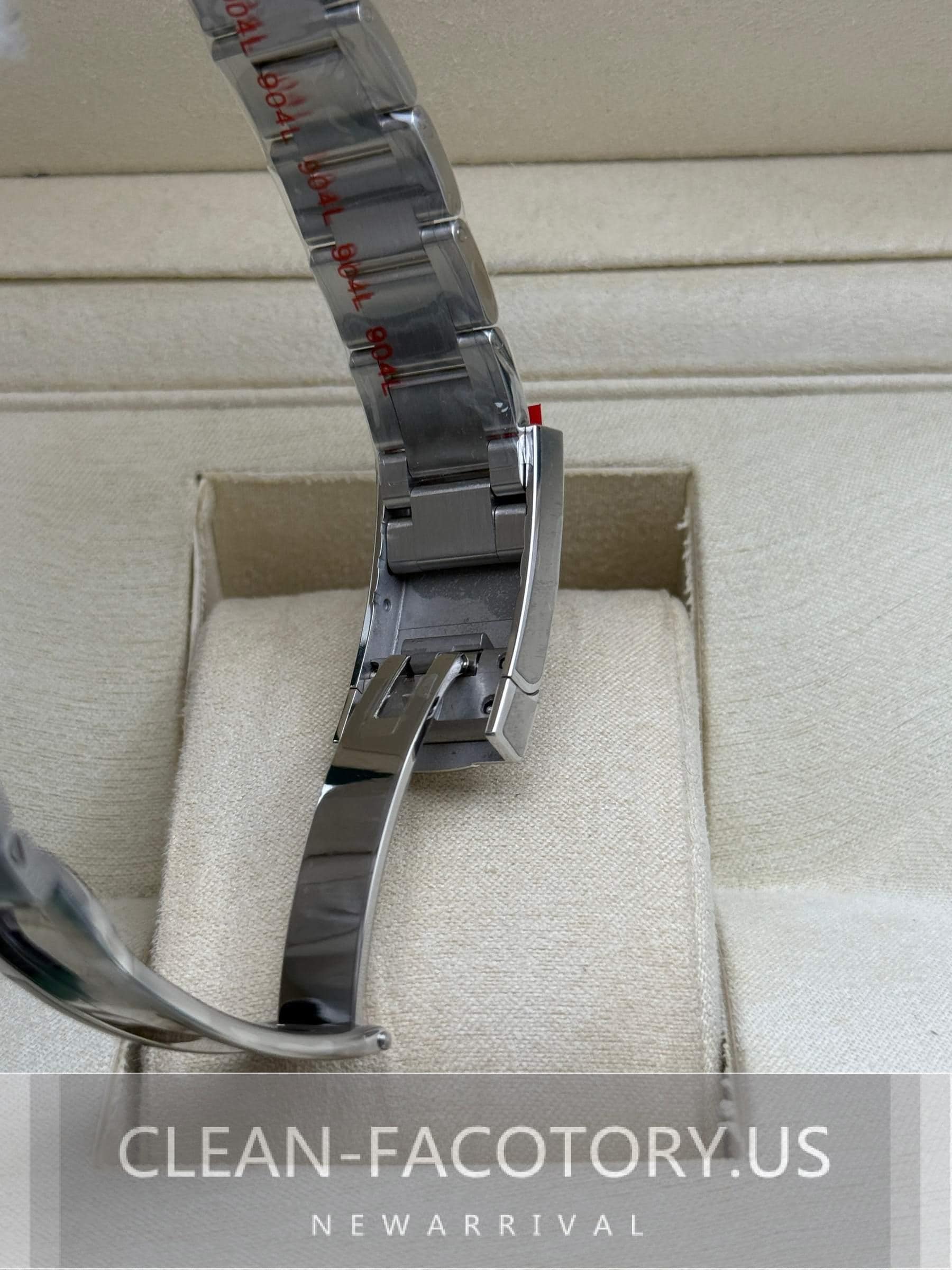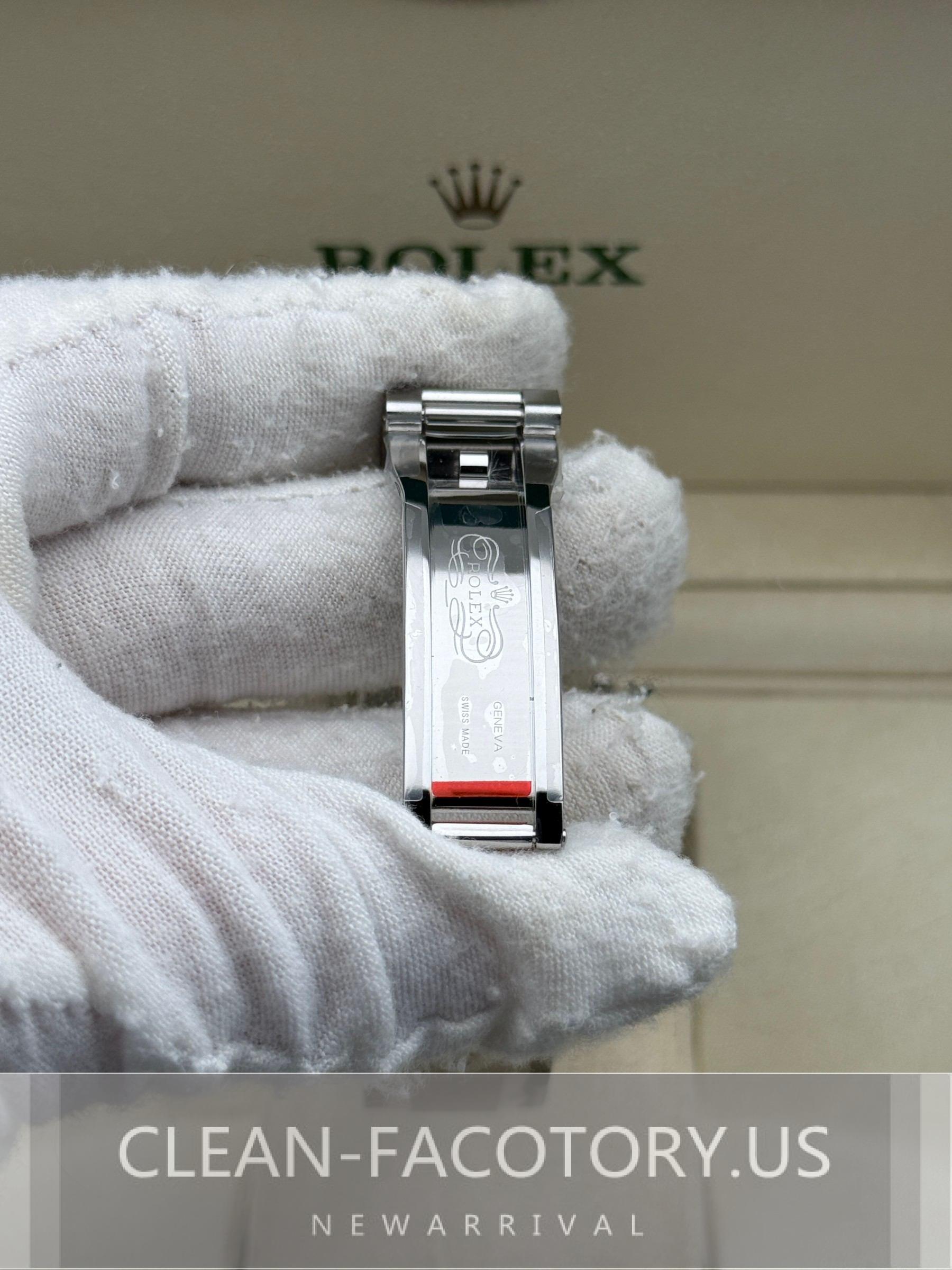 – **Bracelet**: Experience Elevated Comfort and Style with the Clean Factory Oyster Bracelet – Crafted with Solid 904L Stainless Steel, DLC Scratch-Protection, and Easylink 5 mm Extension for a Perfect Fit.