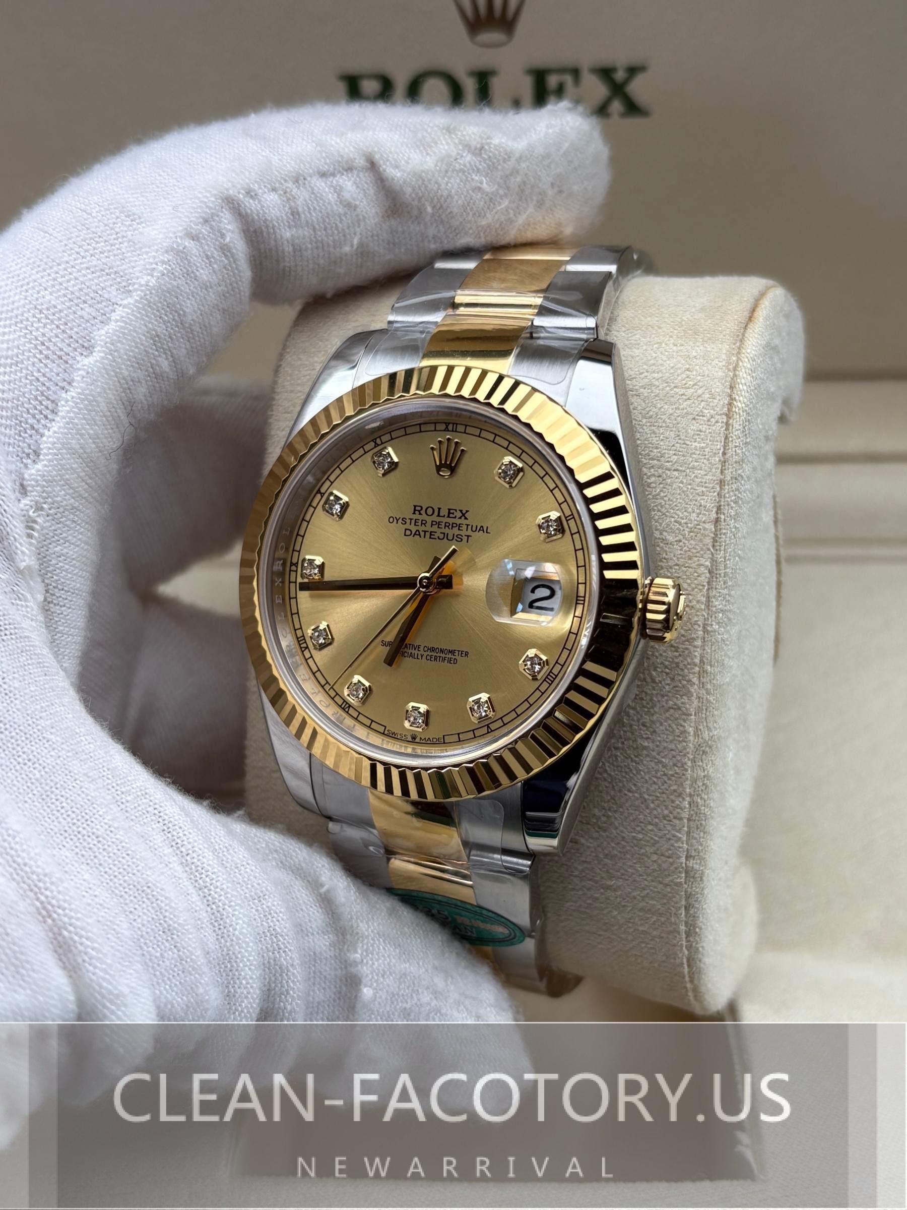 **Rolex Datejust 126333 Oyster Two-Tone Gold Champagne Diamond dial by CLEAN Factory – The Quintessence of Precision and Craftsmanship**