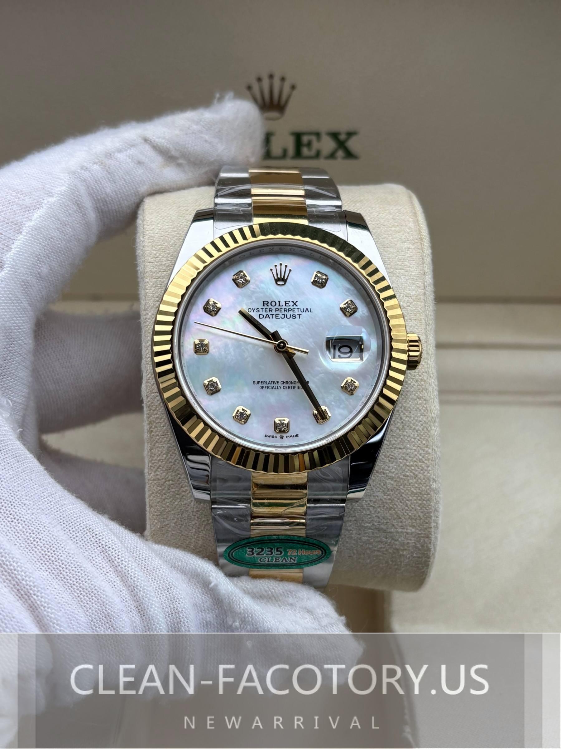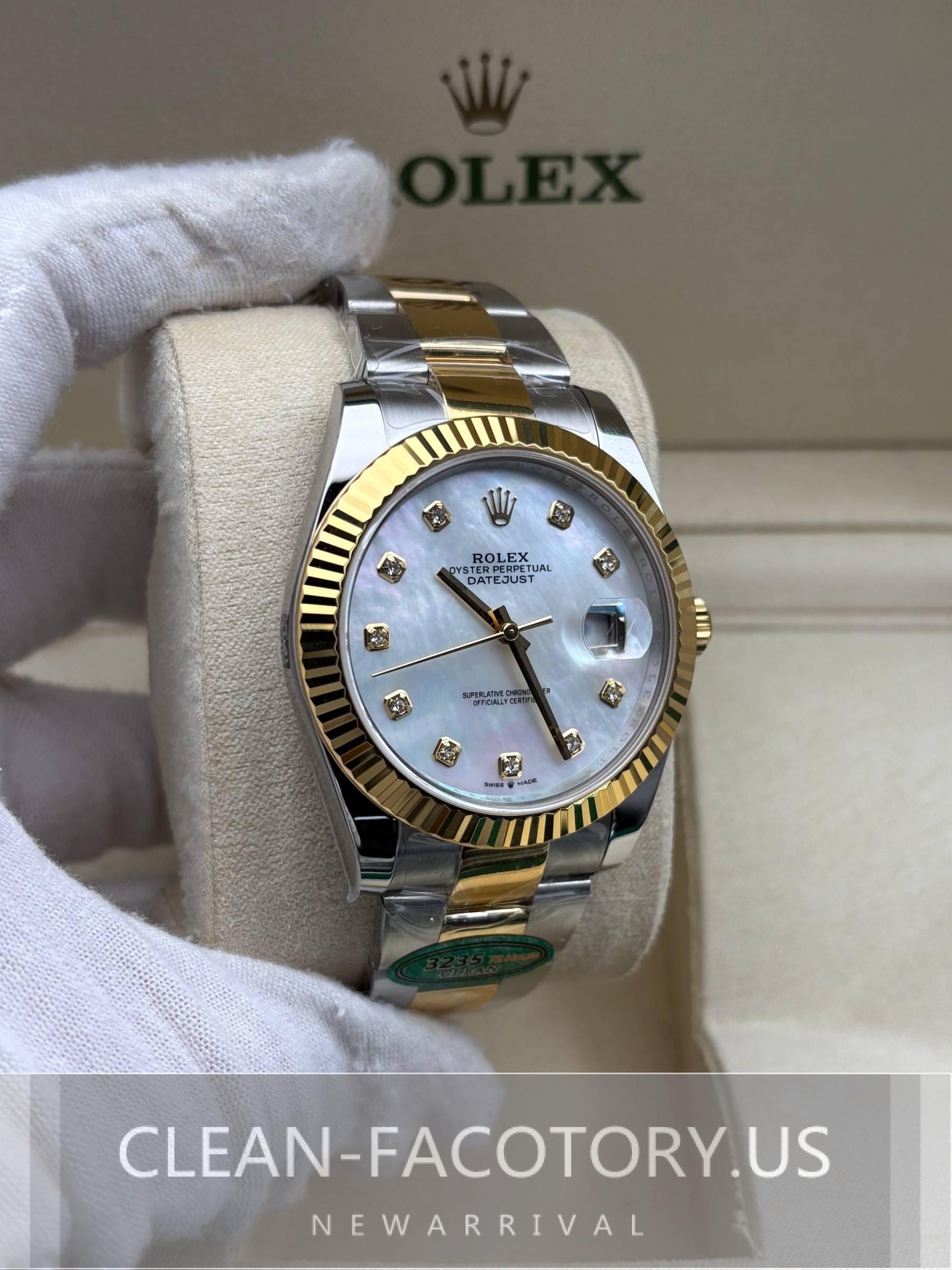 Be the first to review “Clean Factory Rolex Datejust 41mm 126333Oyster Mother of Pearl Diamond Dial, Two-Tone 18K Gold wrapped 904L Steel, Gold Fluted Bezel, Best Edition 3235 Movement”