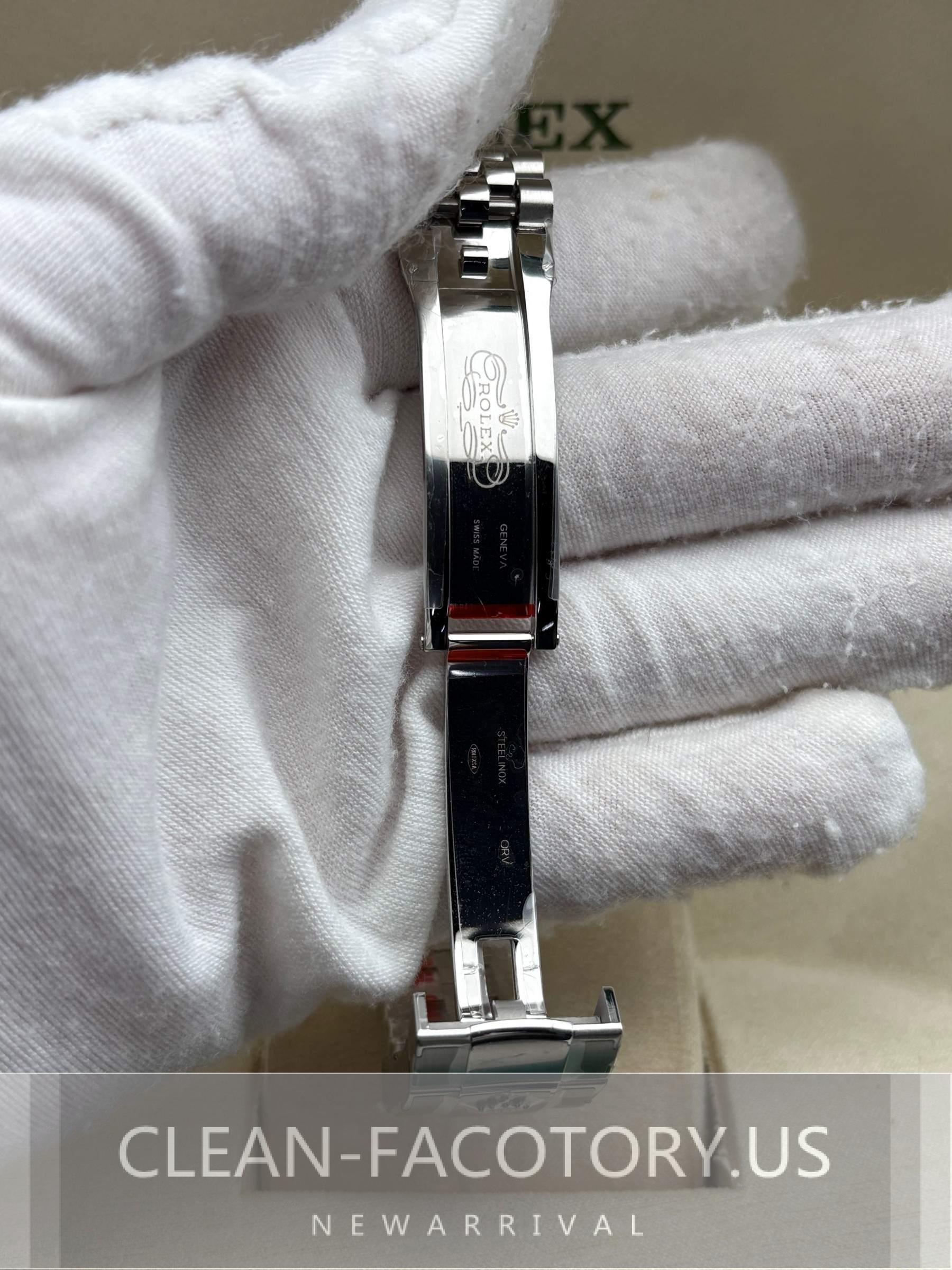 – **Bracelet**: Experience Elevated Comfort and Style with the Clean Factory Jubilee Bracelet – Crafted with Solid 904L Stainless Steel, DLC Scratch-Protection, and Easylink 5 mm Extension for a Perfect Fit.
