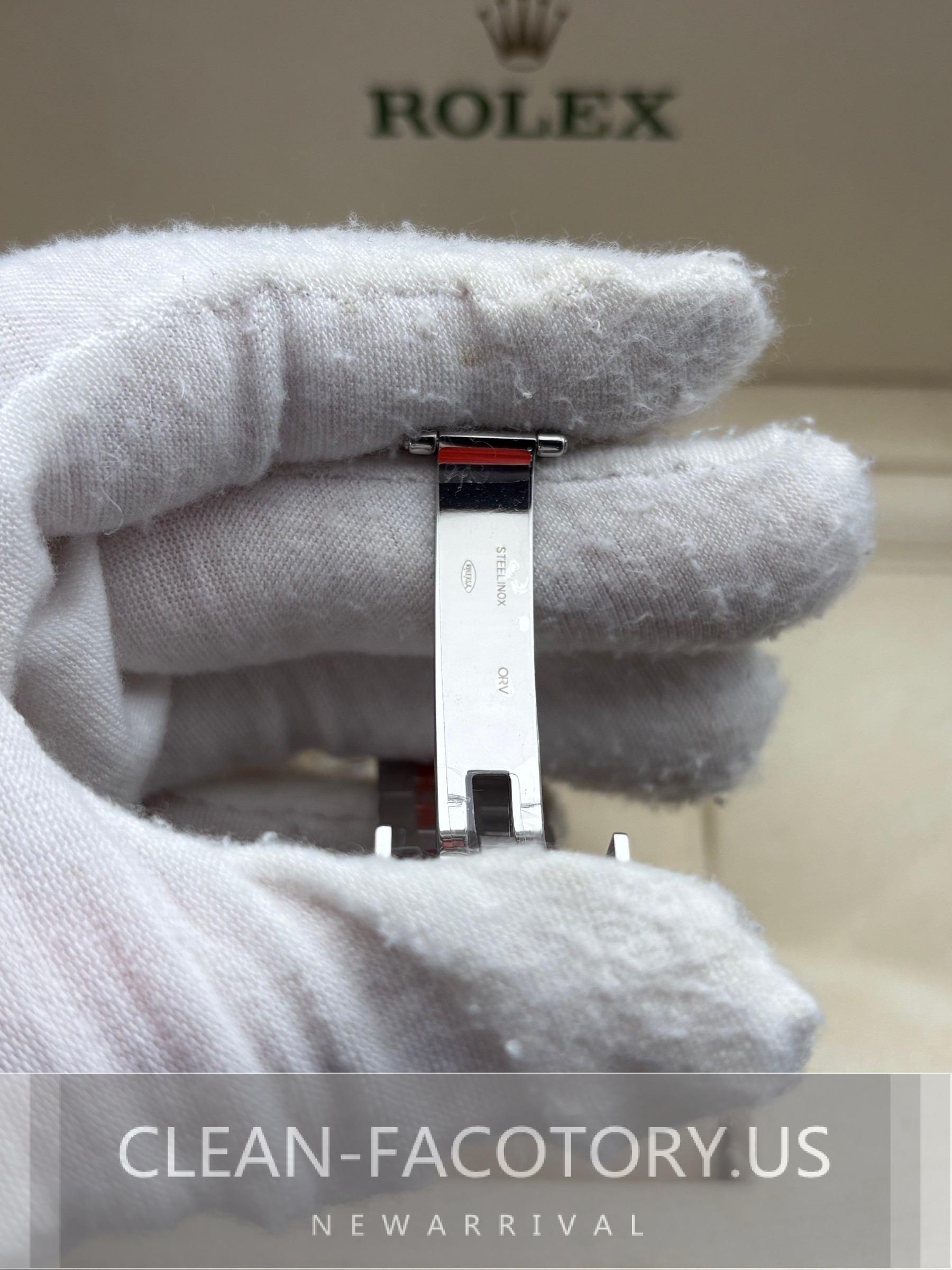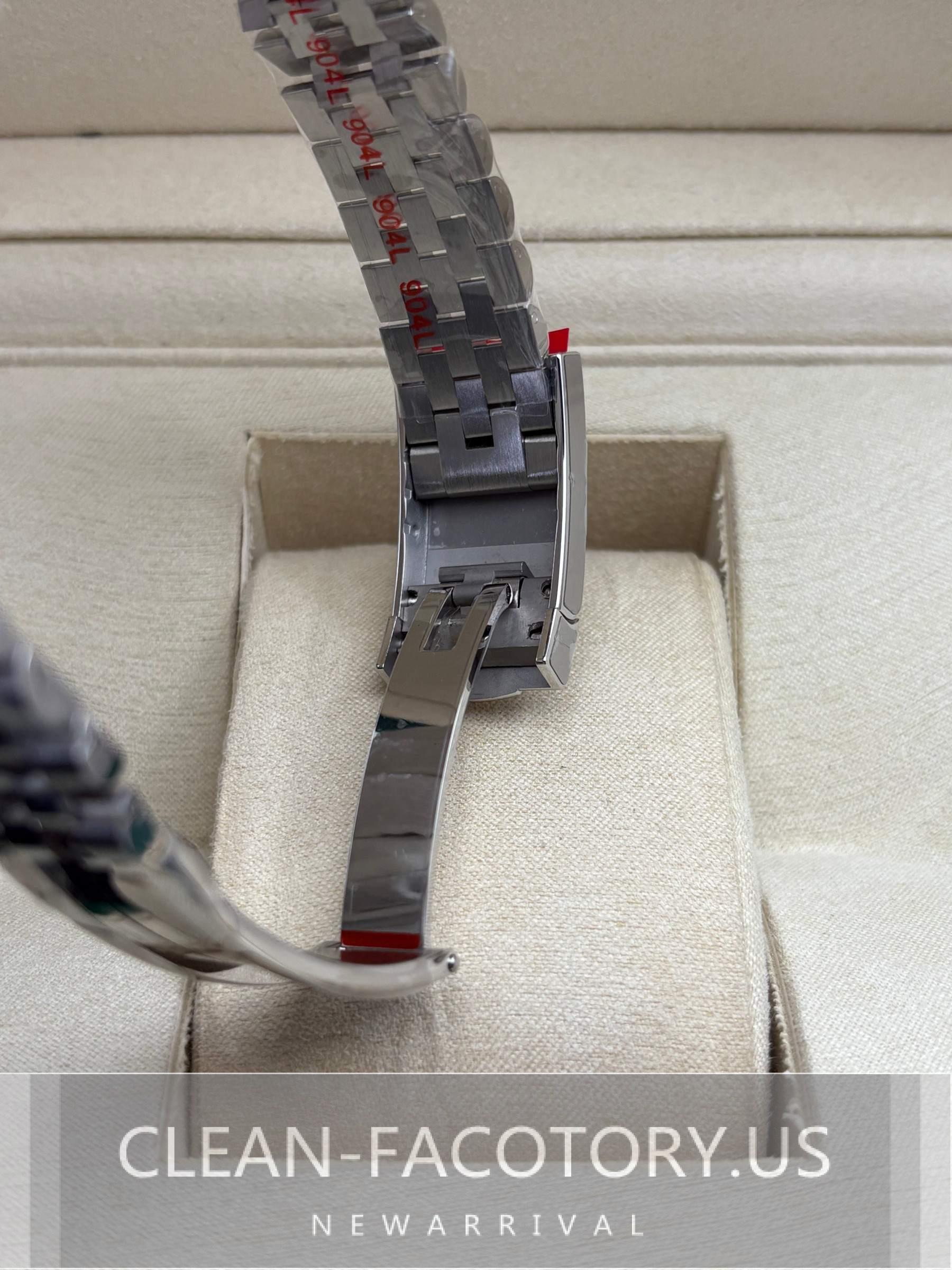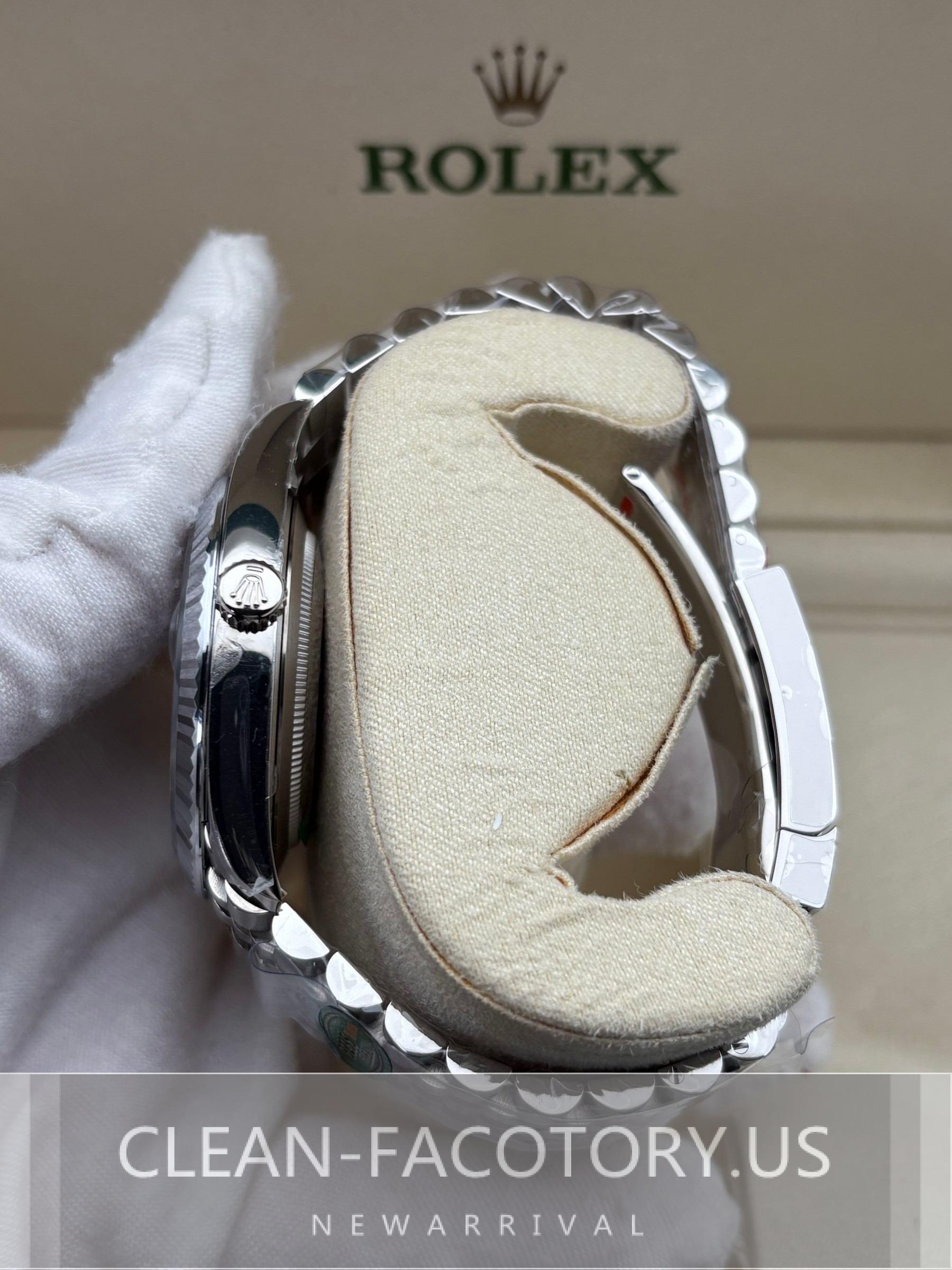 – **CASE**:Our Clean Factory Super Clone watches feature a 41mm solid 904L stainless steel construction, ensuring an exact match to Genuine Rolex 904L steel. It includes a screw-down case-back and a Twinlock double waterproofness system screw-down winding crown for superior water resistance. The ROLEX laser engraving on the Rehaut ring adds authenticity, while a DLC scratch-protection coating ensures durability. Every detail, including dimensions and weight, is faithfully replicated to be 100% identical to genuine Rolex watches, allowing for seamless part interchangeability.