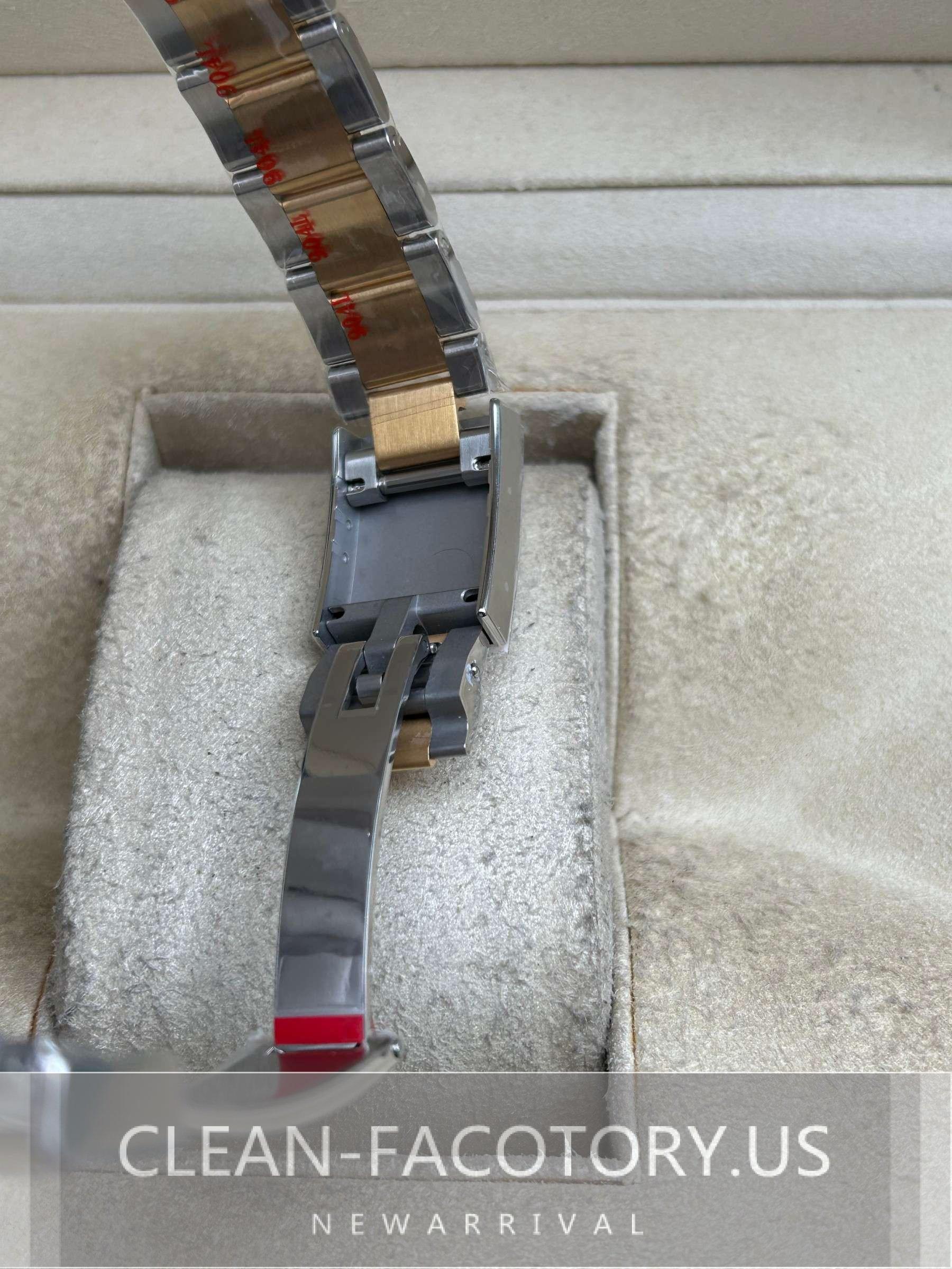 – **Bezel**: Clean Factory bezel is fixed, crafted from 18k Yellow gold wrap solid 904L stainless steel, with black coated numerals and graduations. This design is a perfect replica of the original Rolex.This bezel is polished to a high sheen, enhancing the watch’s overall elegance and sophisticated appearance.
