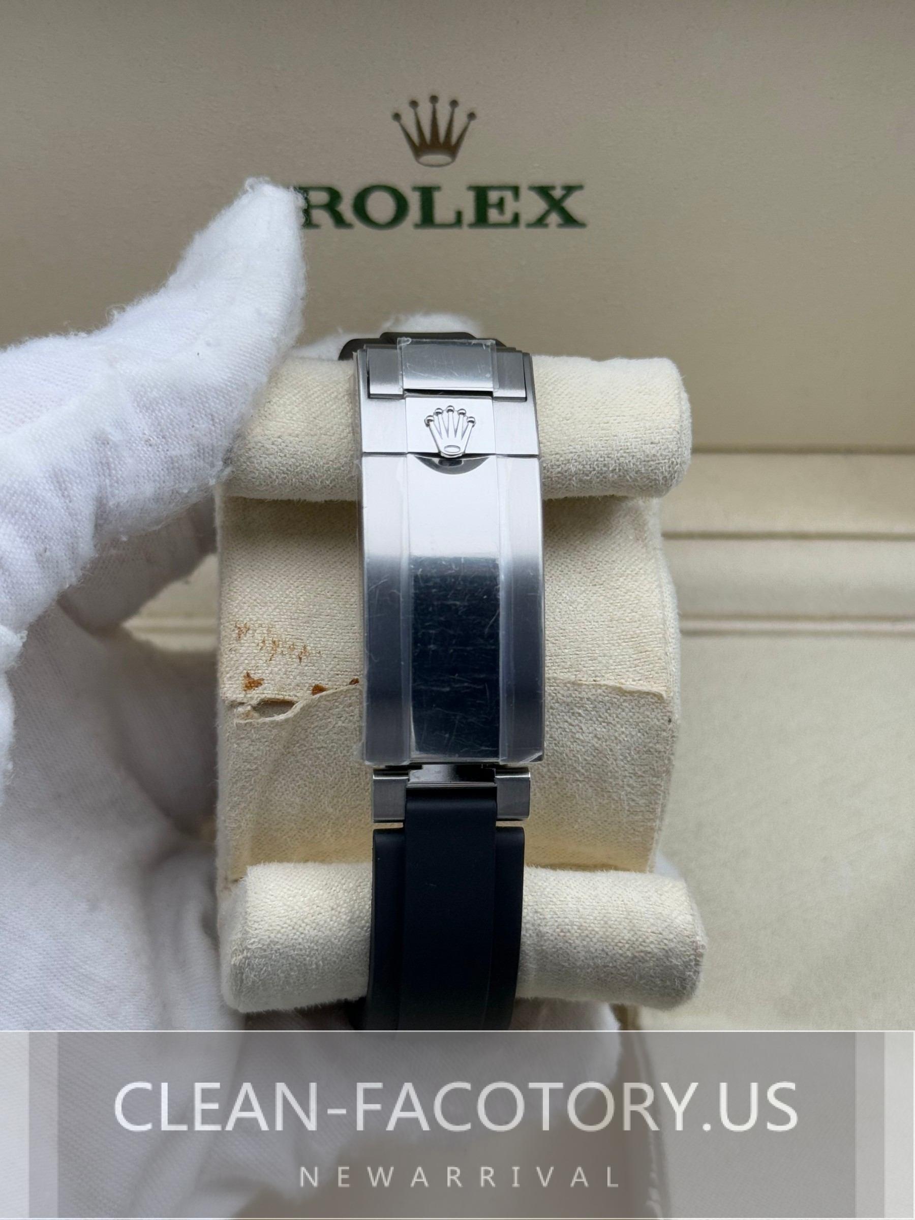 – **CASE**: Case Excellence by Clean Factory: Our 40mm timepiece is wrapped in 18k White Gold over Solid 904L Stainless steel, constructed in a monobloc style, mirroring the esteemed Rolex steel. The watch, featuring a screw-down case-back and push-buttons sealed with synthetic rubber, maintains the integrity of the Rolex design. The ROLEXROLEX laser engraving adorning the Rehaut ring and the DLC scratch-protection coating are testaments to Clean Factory’s attention to detail. Every aspect, from dimensions to weight, is flawlessly replicated to match the genuine Rolex, with all parts being fully interchangeable.