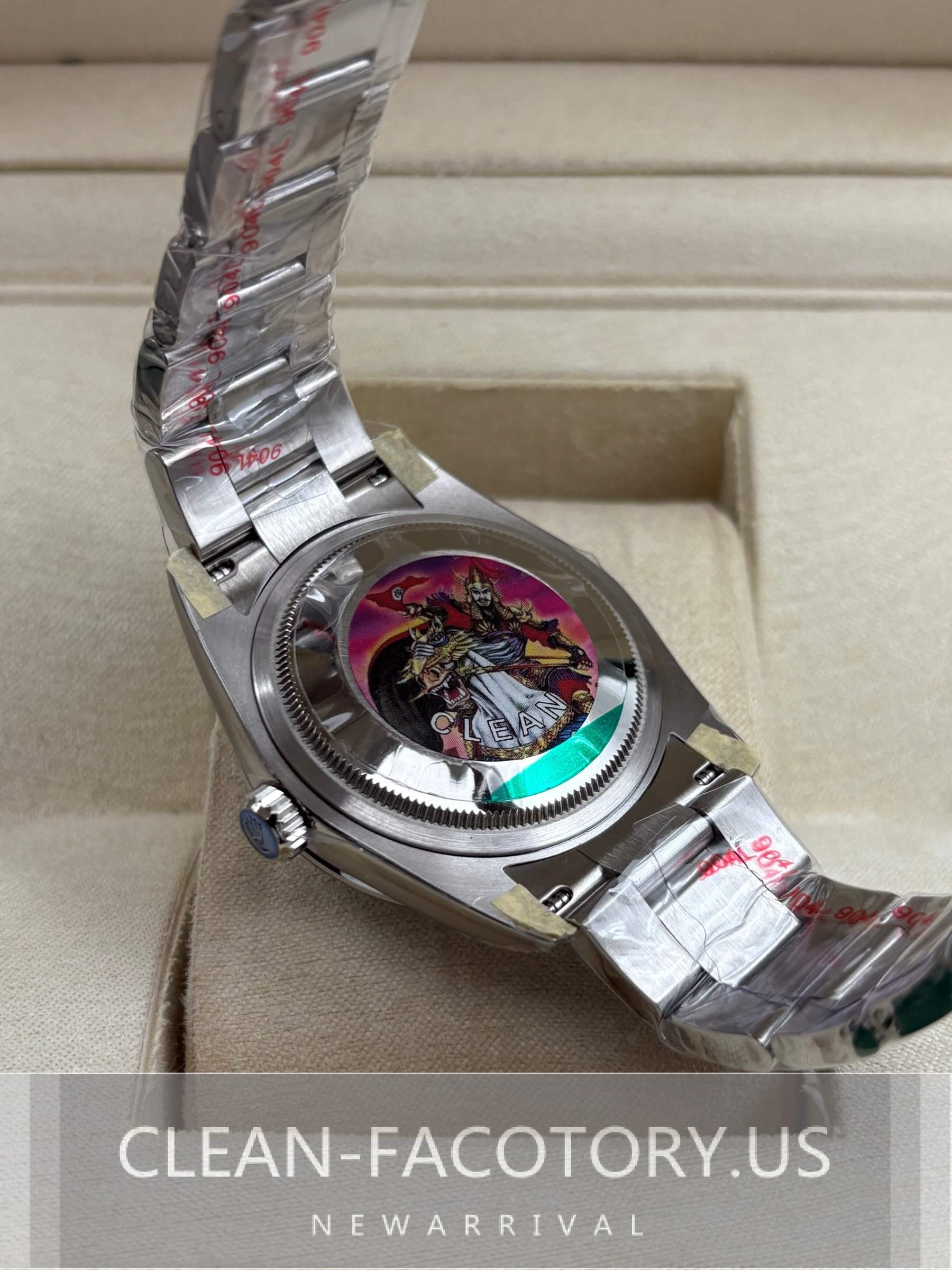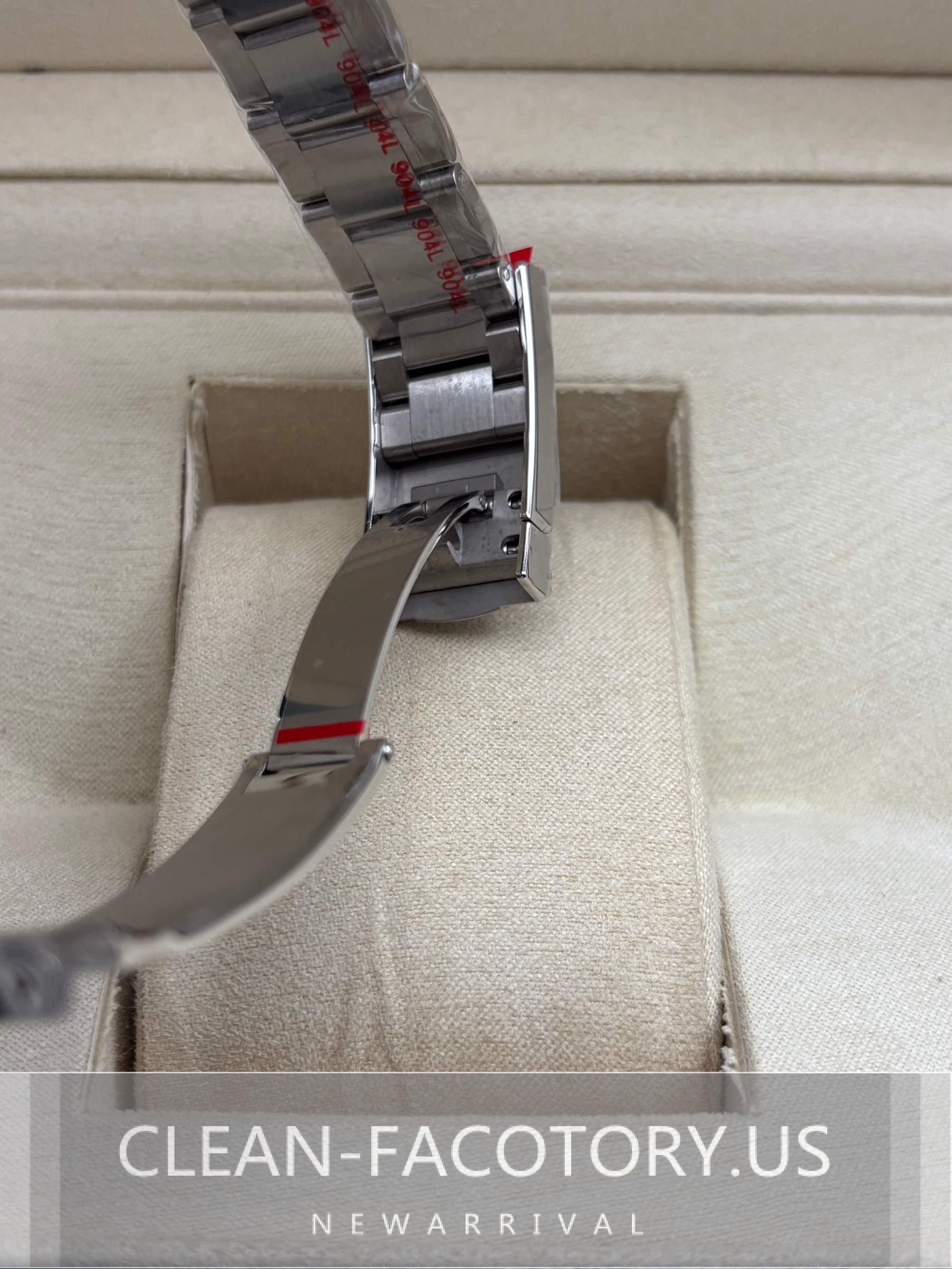 – **Bracelet**: Clean Factory’s design includes an Oyster bracelet with flat three-piece links, made from solid 904L Grade Stainless Steel and coated with a DLC scratch-protection coating. The bracelet features solid threaded screws, allowing for easy removal of bracelet links using a small screwdriver. The bracelet is equipped with a folding Oysterclasp, including an Easylink 5 mm comfort extension link, just like the original.