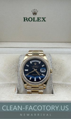 Clean Factory Rolex Day-Date 40mm 228348RBR President , Black Onyx Dial with Baguette Diamonds, Diamonds Bezel, 18K Gold wrapped 904L Steel, Best Edition 3255 Movement