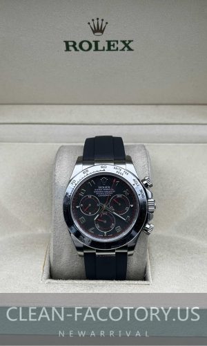 Clean Factory Rolex Daytona 116519 Black-Grey Arabic Dial, Rubber Strap, Cerachrom Bezel, 904L Steel, Best Edition 4130 Movement