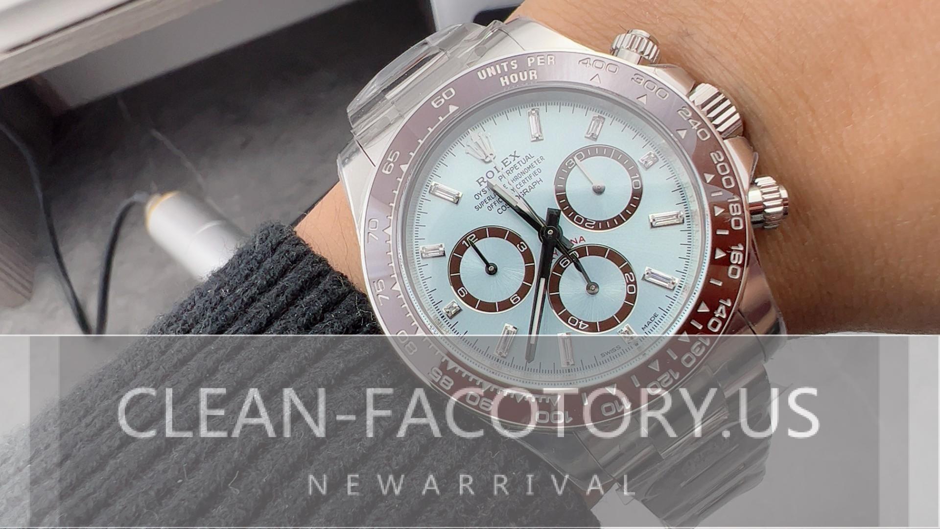 Among Clean Factory’s most talked-about 2025 releases is the super clone version of the Rolex Daytona 126506—a model that blends the rare aesthetics of an ice-blue dial, brilliant-cut diamond hour markers, and a rich brown ceramic bezel. Originally introduced by Rolex as a platinum-only watch, this particular configuration exudes understated luxury. Clean Factory’s take on this piece brings the coveted design within reach, featuring a white-gold-wrapped 904L stainless steel case and the meticulously recreated 4131 movement. Visual Aesthetics: Ice Blue, Chocolate, and Diamonds The dial is the centerpiece of this release. The ice-blue tone isn’t just a paint job—Clean Factory…