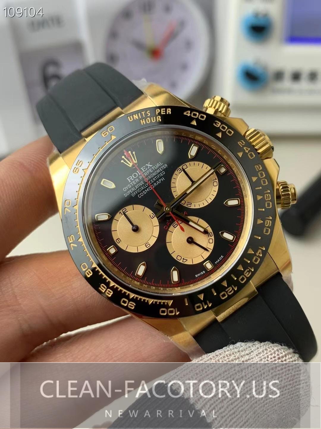 Hello everyone, today I’m introducing the Clean Factory Rolex Daytona 116518LN Black Dial, Red Chronograph Hand, Rubber Strap, Cerachrom Bezel, Yellow Gold Wrapped 904L Steel, Best Edition 4130 Movement, also known as the “Little Devil” or “Devil’s Eye.” This model is one of the key pieces in the Daytona series, and many people are fond of this particular color combination. While multiple factories have produced this watch, the differences in detail are quite noticeable. Let’s take a closer look at the craftsmanship of this Clean Factory “Little Devil” Daytona. First, let’s discuss the movement. This model is equipped with the…