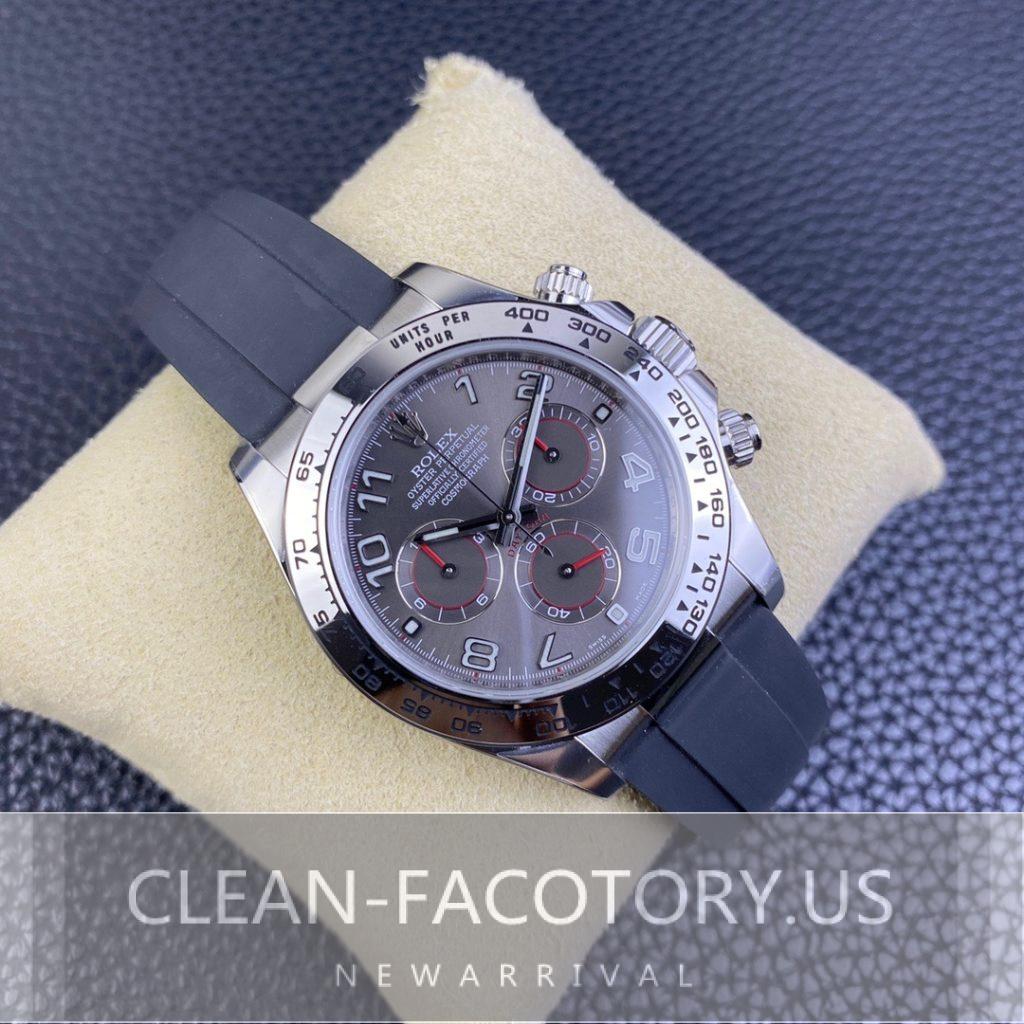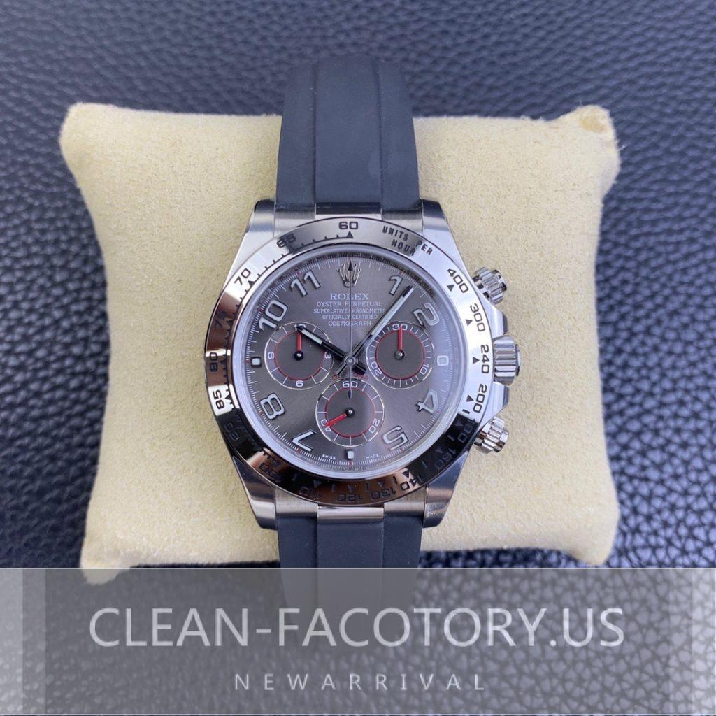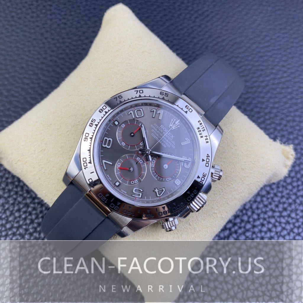 Hello, everyone! When it comes to replica watches, Clean Factory is often the first name that comes to mind. Known for its outstanding craftsmanship, Clean Factory has set a high standard in the replica watch market, especially with its Rolex models. Each piece is meticulously crafted based on the genuine product, ensuring top-notch quality and attention to detail. Today, I’m excited to discuss one of their more unique offerings—the Rolex Daytona 116519 with a black-grey Arabic dial, commonly referred to as the “Grey Phantom.”