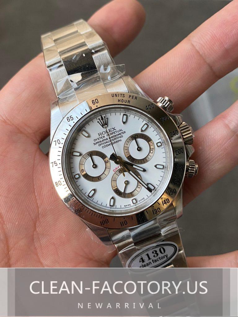 The Rolex Daytona 116520 replica by Clean Factory is a testament to the zenith of replica watchmaking. It encapsulates the essence of precision, elegance, and unmatched performance in the realm of high-quality replicas. This masterpiece is driven by the revered 4130 movement, synonymous with accuracy and reliability, mirroring the original’s functional prowess with remarkable fidelity.